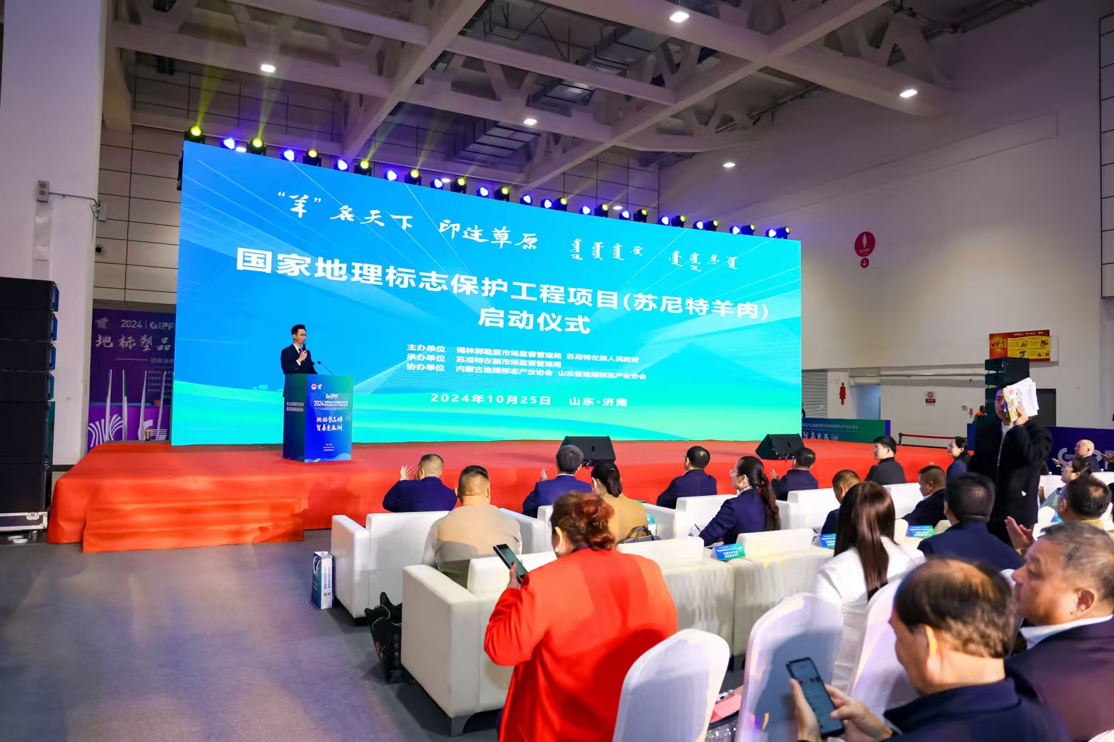 10月25日上午,中国地理标志产品交易会在山东省济南市开幕,内蒙古自治区唯一入选项目——苏尼特羊肉“羊”名天下·印记草原国家地理标志保护工程项目启动仪式在山东省国际会展中心举行。