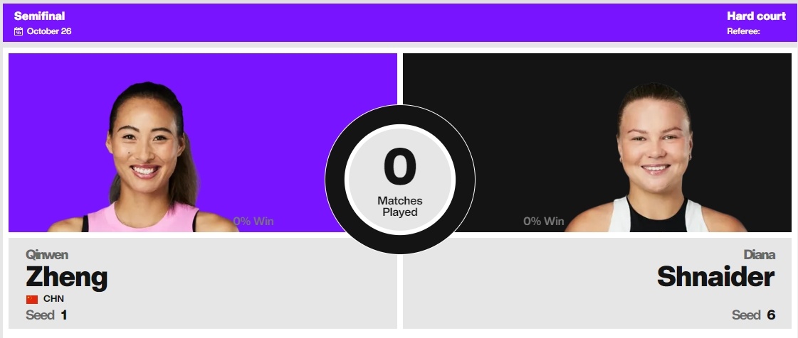 在本场半决赛中,中国选手郑钦文对战俄罗斯选手施耐德。这是二人的首次交锋。