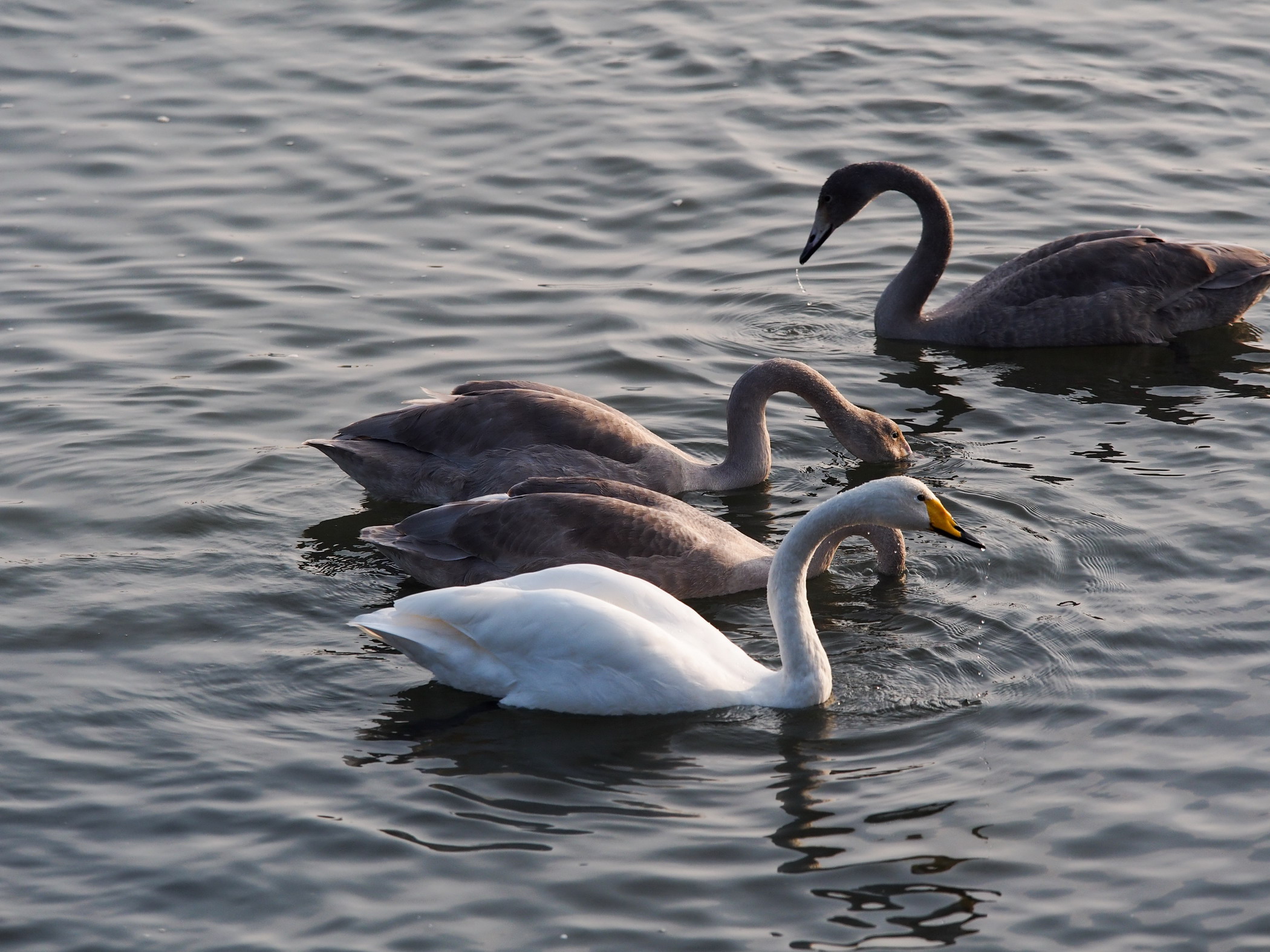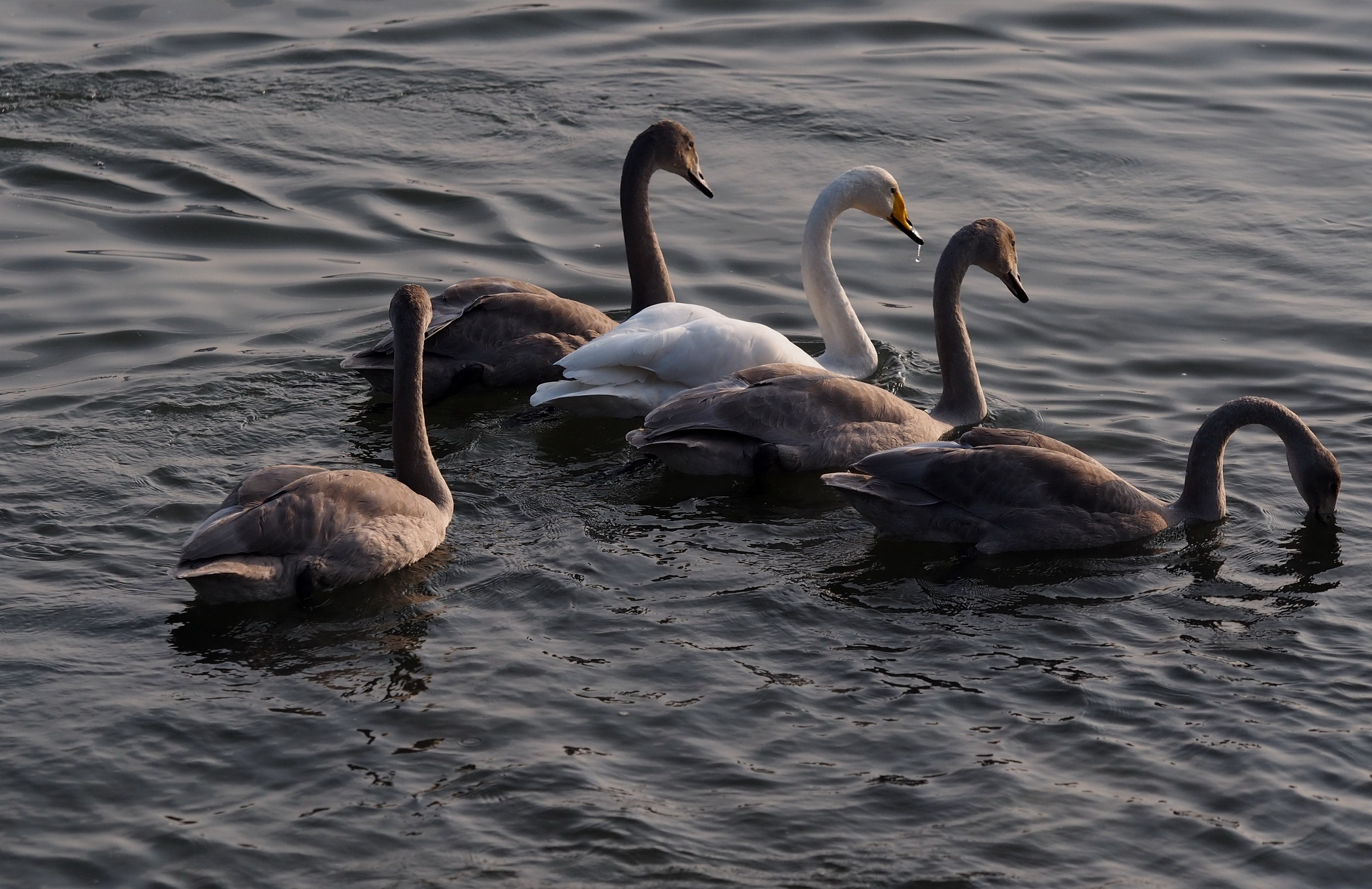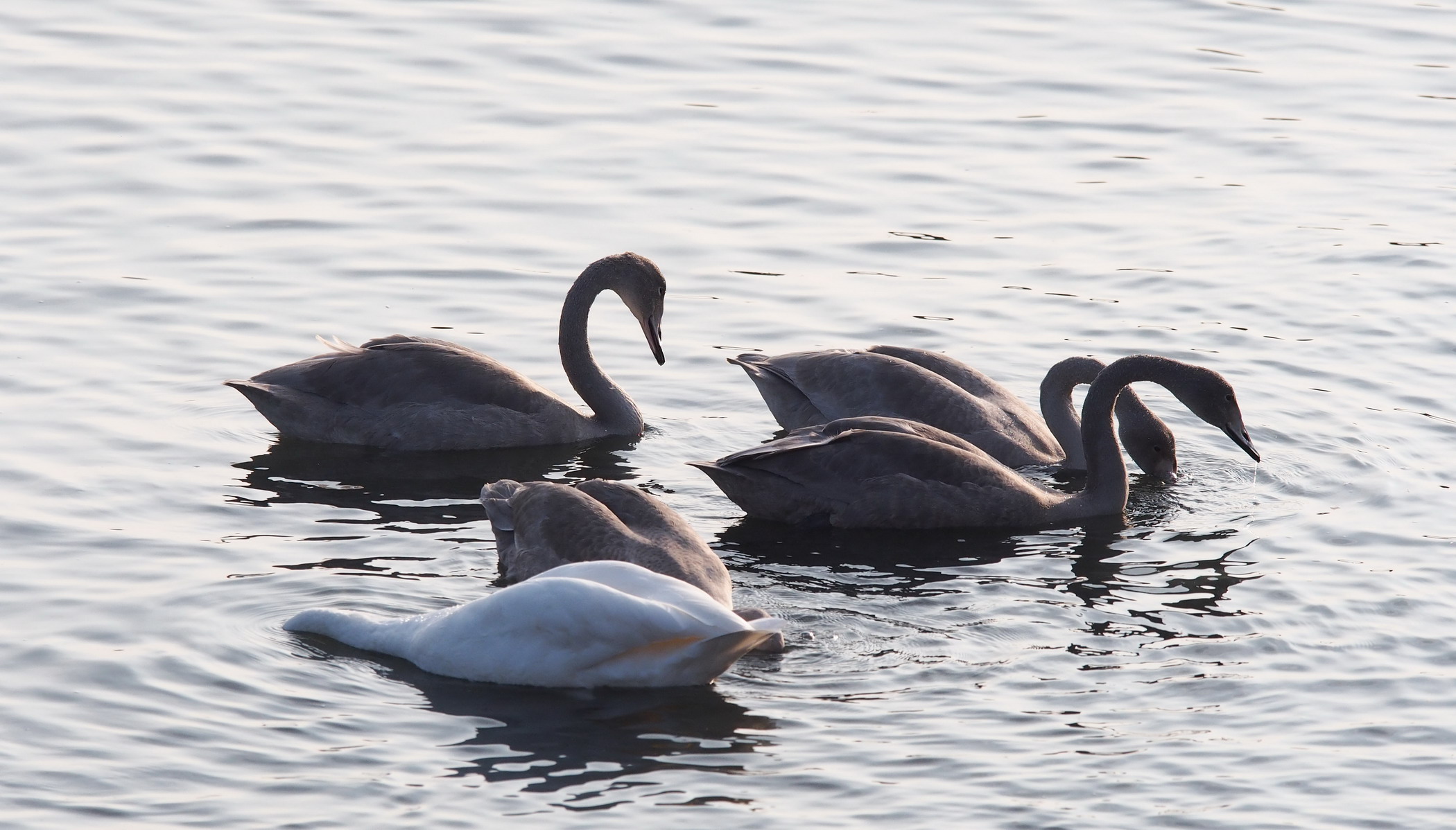 大天鹅赶赴荣成烟墩角越冬,天鹅家族里居然还有很多“丑小鸭”