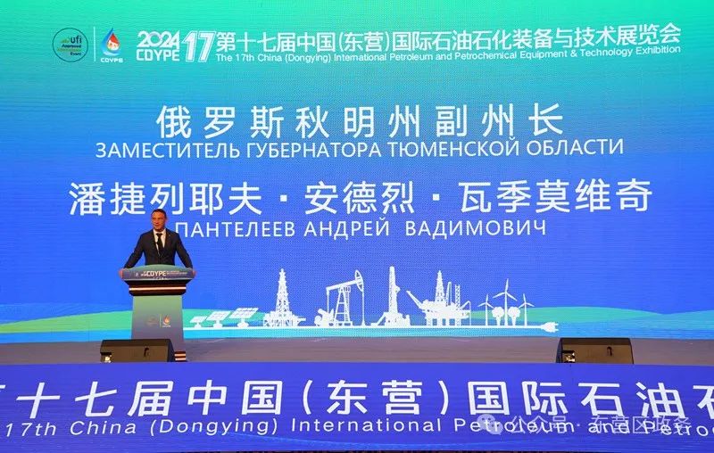 潘捷列耶夫·安德烈·瓦季莫维奇在开幕式上作了致辞。他说,秋明地区地理位置优越、矿产资源丰富,未来将聚焦矿产开发、石油装备、石油化工等战略方向加快发展。中国是秋明地区的主要对外贸易伙伴之一,在当前市场环境下,有必要进一步增强与中国企业的交流合作。中国(东营)国际石油石化装备与技术展览会是行业顶尖展会,展示了行业内最前沿的创新成果,是石油石化行业重要的沟通交流平台。希望可以利用这个平台,加强项目对接,开展深入交流,在更深层次达成共识,在更广领域深化合作,共同推动石油装备产业发展迈上更高水平,共同谱写秋明与东营合作发展的新篇章。