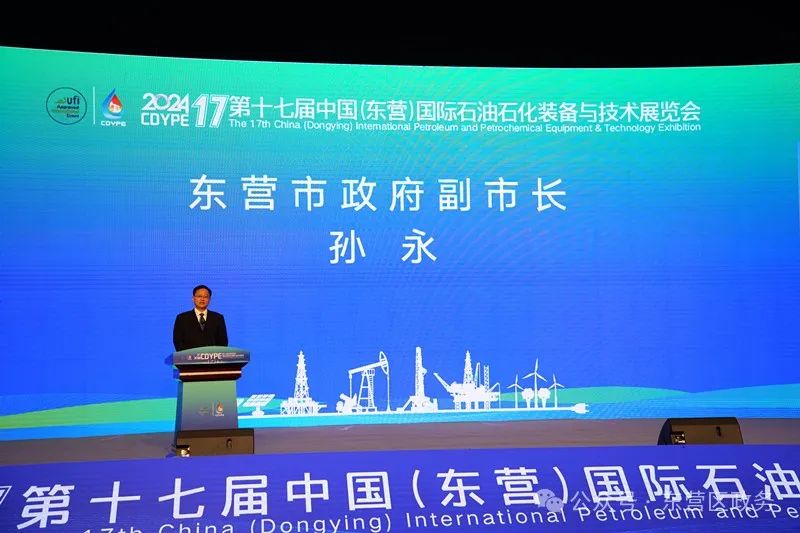 孙永在致辞中向各位嘉宾表示欢迎。他指出,近年来,东营市以落实黄河重大国家战略为牵引,聚力推进高质量发展,培育形成了较强竞争力的石油装备产业集群。中国(东营)国际石油石化装备与技术展览会作为国内石油装备行业第二家通过UFI认证的展会,已连续成功举办16届,在国内外极具影响力和吸引力。希望各位嘉宾、朋友通过这次展会,更多地了解东营、投资东营,更好地增进友谊、促进发展,在更深层次达成共识,在更广领域深化合作,共同推动石油装备产业发展迈上新台阶,携手共创美好未来。
