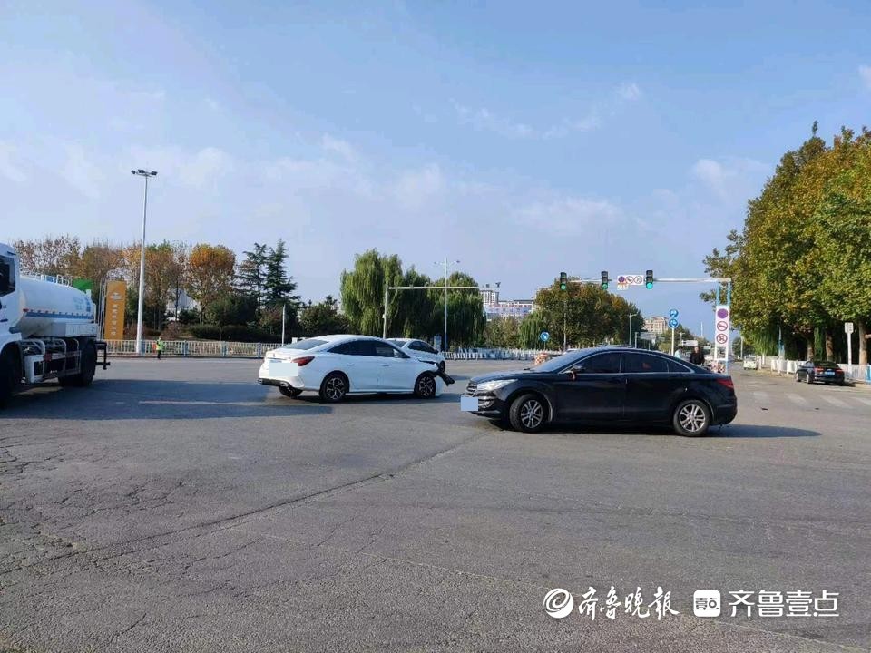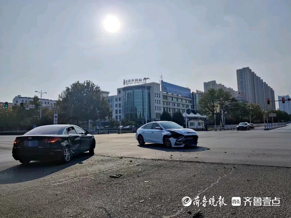 情报站|泰安龙潭路一路口两辆轿车发生碰撞,两车均不同程度受损