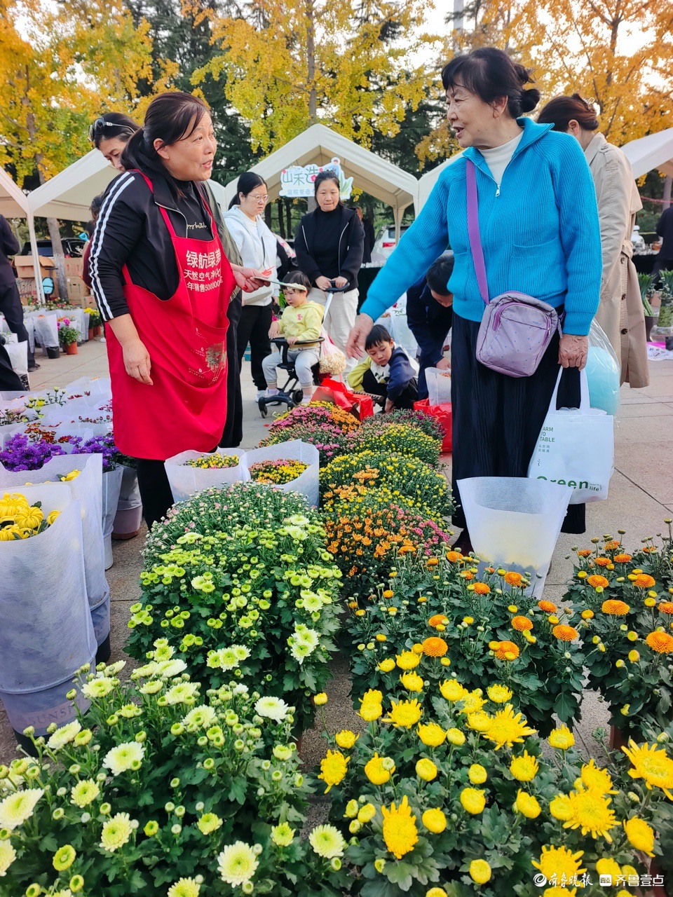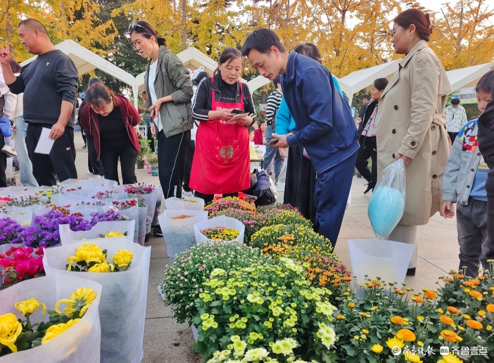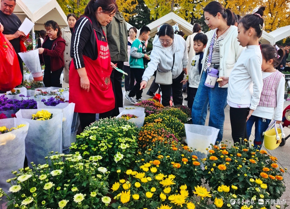 11月2日,临沂国际雕塑公园举办金秋菊花展览,上百种菊花竞相开放,为深秋季节增添了美丽色彩,吸引了众多游客驻足欣赏购买。 (高军 摄)