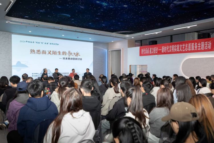 11月9日下午,由淄博市桓台县政协文史委、桓台县文学艺术界联合会、桓台县文化和旅游局、桓台县融媒体中心联合主办的巩本勇诗歌研讨会在桓台县阅享空间举行,诗歌爱好者200多人济济一堂,共读诗歌。