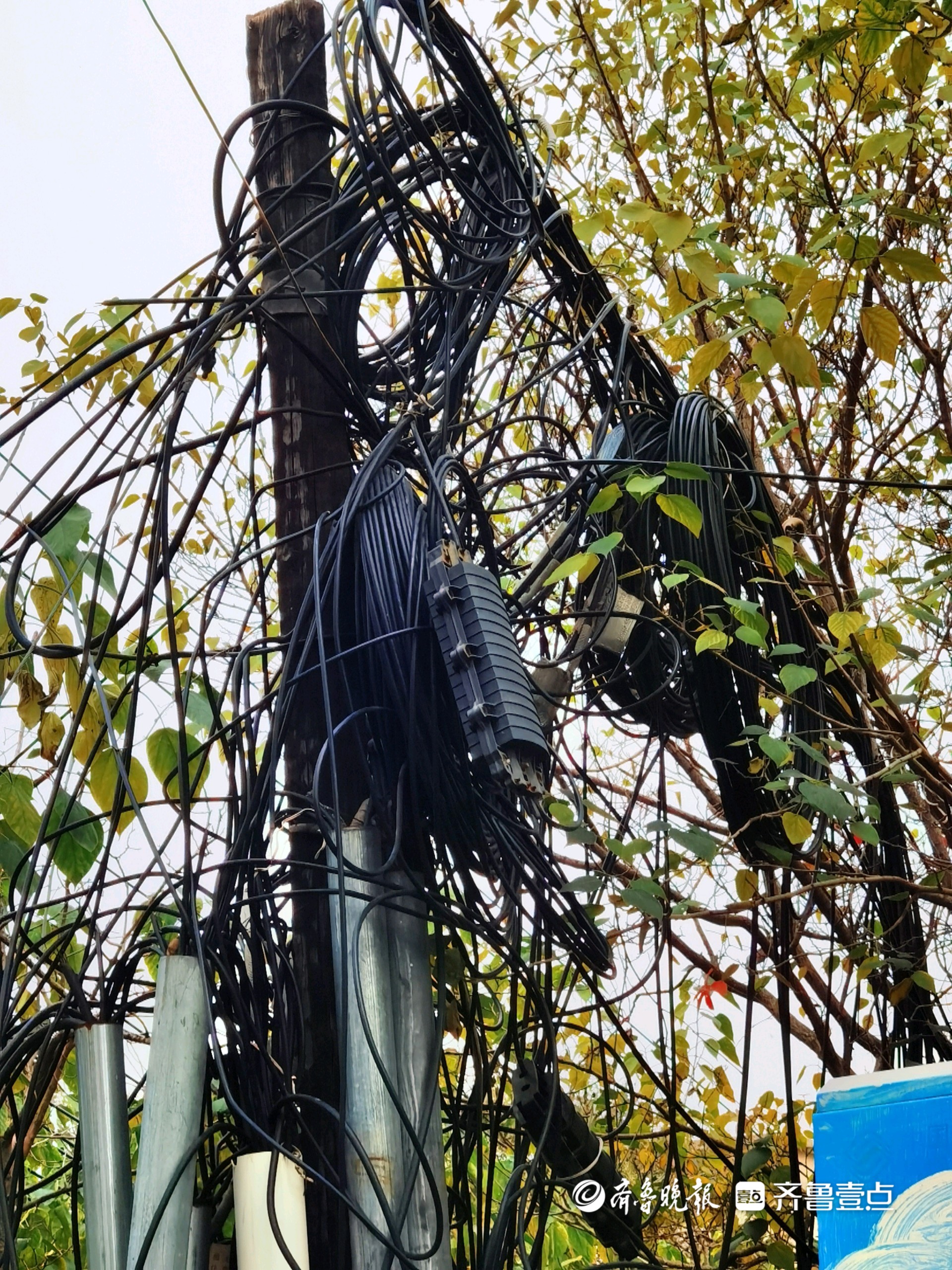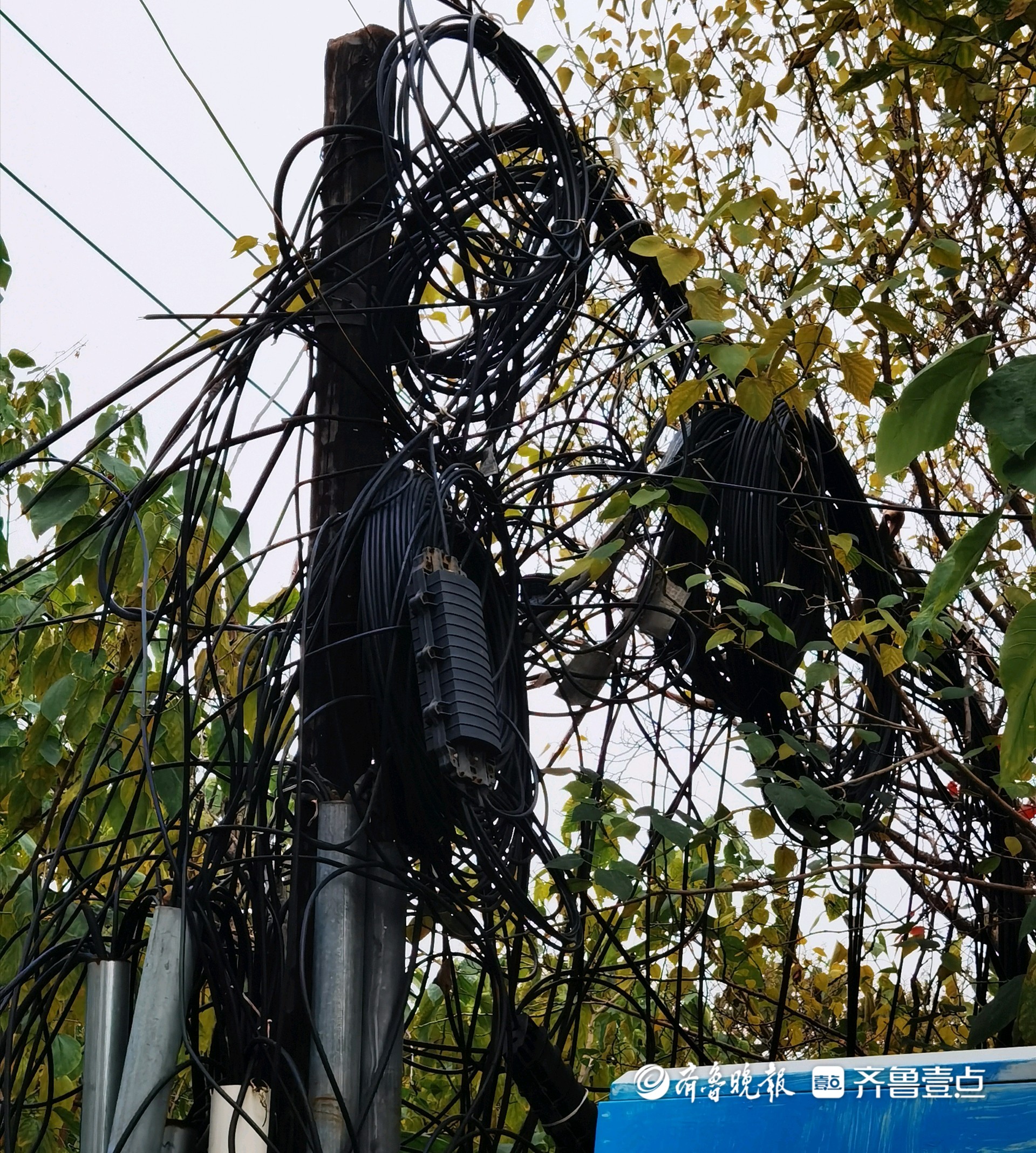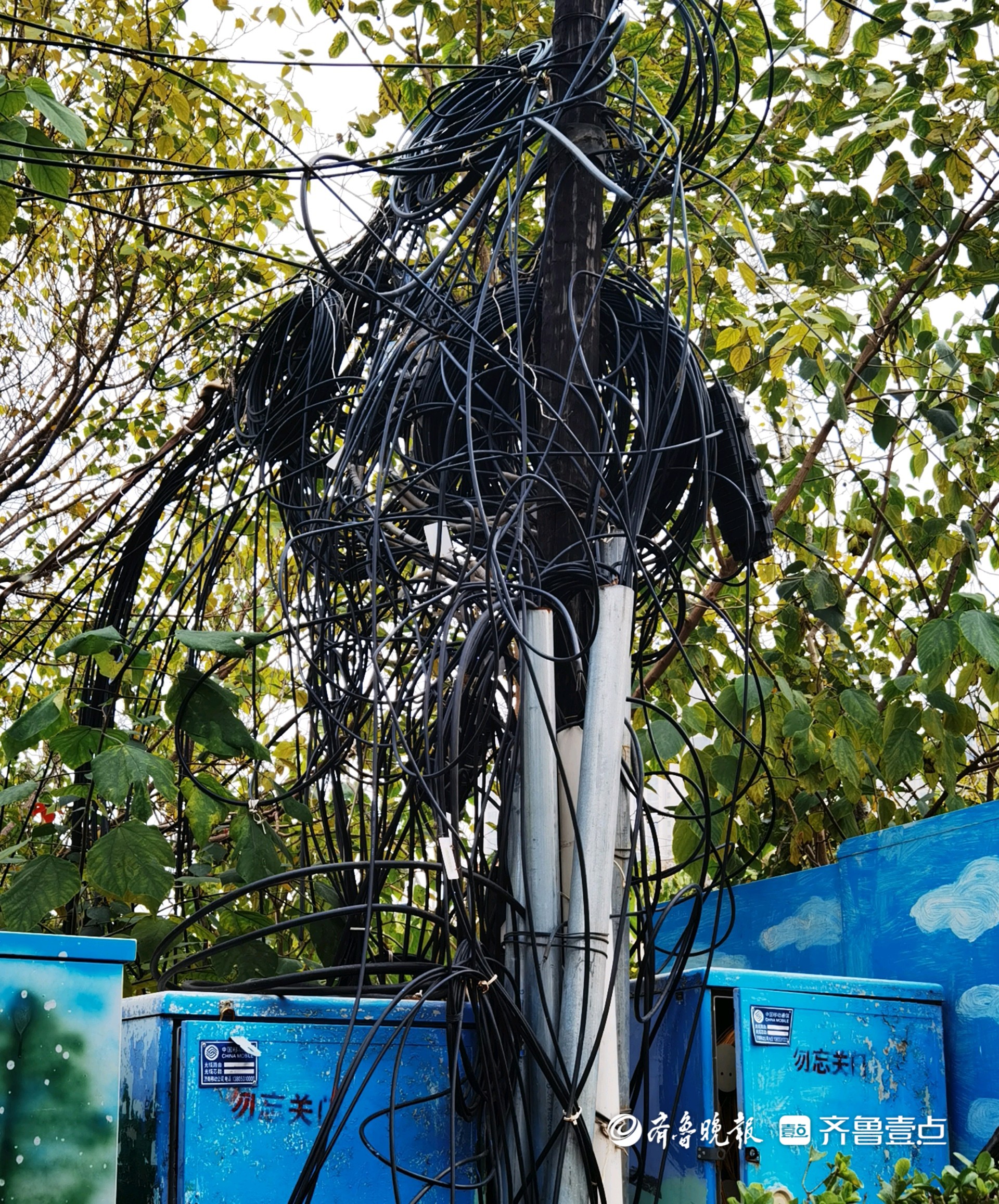 情报站|济南二环南路线缆凌乱成“蜘蛛网”,存在安全隐患待整治