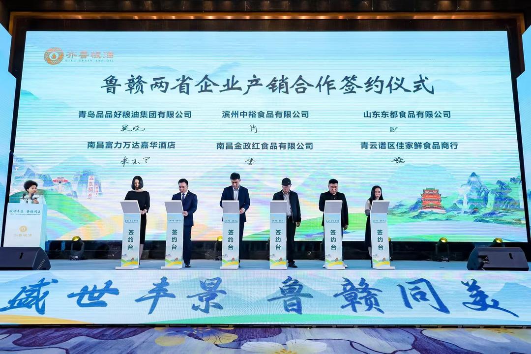 山东省粮食和物资储备局党组成员、副局长刘萍在致辞中表示,山东牢记嘱托“走在前、挑大梁”,2023年粮食总产量达到1131.1亿斤,再创历史新高;粮食产业总产值超过5600亿元,继续稳居全国首位,扛稳了粮食大省担当。在“齐鲁粮油”公共品牌引领下,立足山东粮食产业基础和资源禀赋,形成了“1个省级公共品牌+7个市县区域品牌+众多知名企业品牌”的三级金字塔架构,建成覆盖产购储加销全链条的粮食产业互联网平台——“好粮有网”,连续六年蝉联中国粮油影响力公共品牌。“面筋道,油浓香”的齐鲁粮油与“风景这边独好”的江西好粮油,一定能够相得益彰、美美与共,为人民群众的幸福生活增味添香。