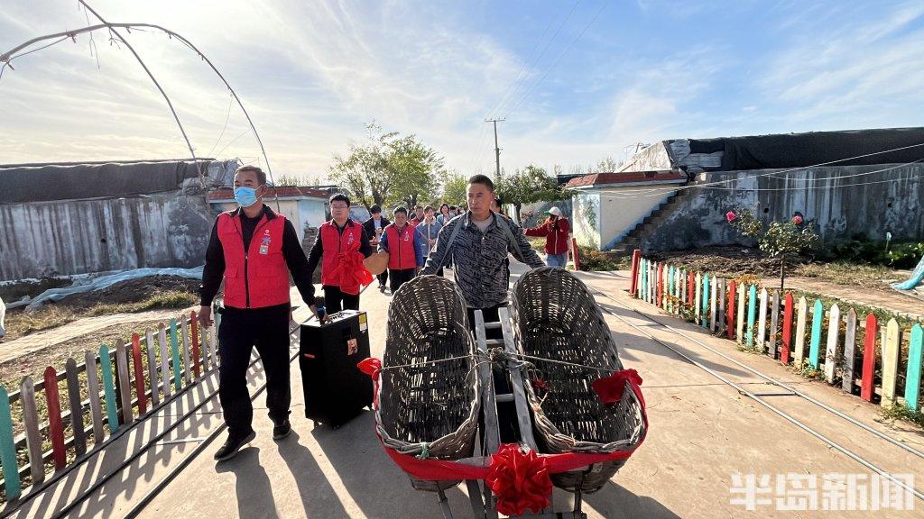 现场只见工作人员推着一个绑满红绳的农用推车,兴高采烈地来到地头,游客们簇拥在身后。九龙山采摘研学基地的负责人李春花解释道,“民间有‘娶白菜’的传统仪式。俗话说,小雪出白菜。在小雪时节‘娶’一棵白菜回家,会觉得心里有底气,意味着有饭吃。白菜的寓意也特别好,白头到老,发‘百财’。所以,就有了‘娶白菜’的仪式。”