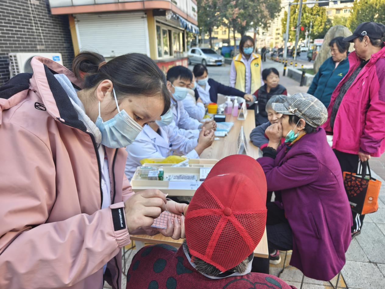 活动现场,中西医结合医院的医护人员热情地为居民们提供多样服务。只见医生们仔细地为居民号脉,通过脉象了解居民身体状况;耳穴压豆项目也备受欢迎,不少居民体验后直呼新奇有效;量血压处排起了小队,医护人员认真记录着数据并给出健康建议;还有穴位按摩服务,让居民们在放松的同时感受中医穴位的奇妙。