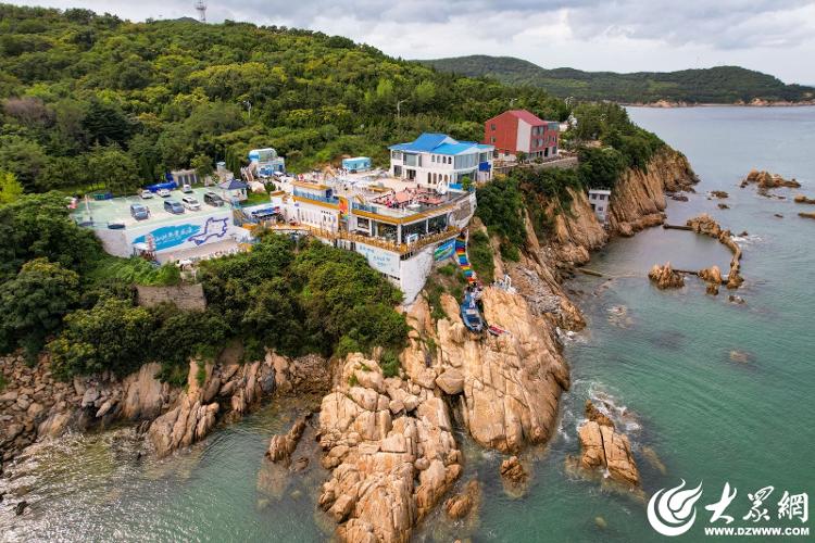 吹着海风品咖啡,迎面望去是威海著名景点猫头山,海天一色,景色迷人,很快成为网红打卡地。