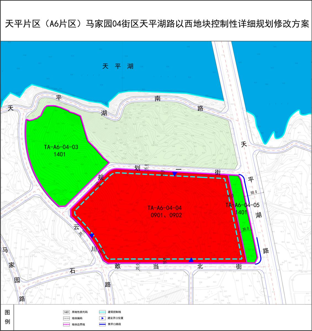 1、规划名称:天平片区(A6片区)马家园04街区天平湖路以西地块控制性详细规划修改方案。