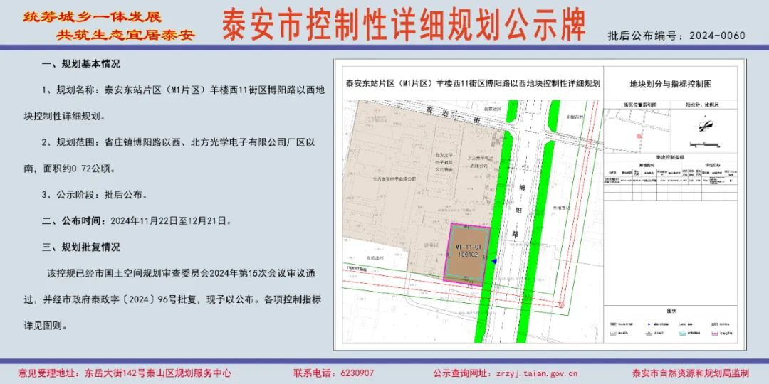 2024-0060《泰安东站片区(M1片区)羊楼西11街区博阳路以西地块控制性详细规划》