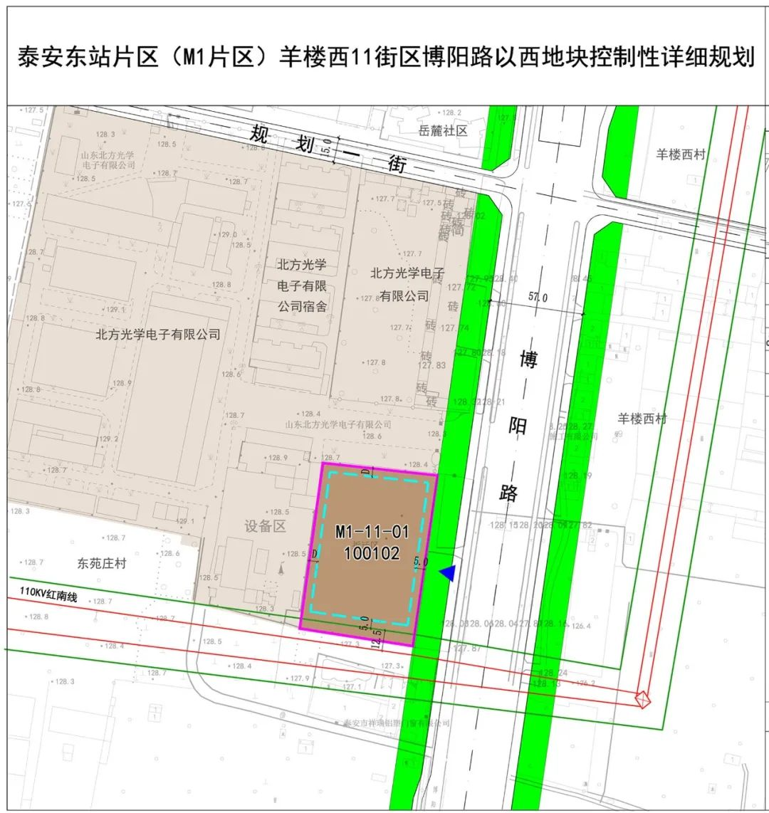 1.规划名称:泰安东站片区(M1片区)羊楼西11街区博阳路以西地块控制性详细规划