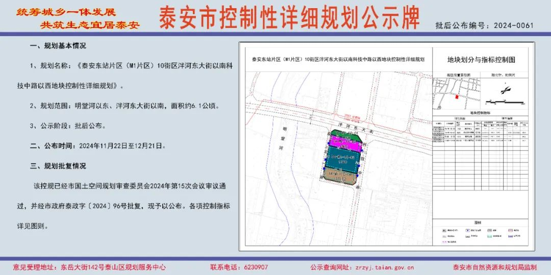 2024-0061 泰安东站片区(M1片区)10街区泮河东大街以南科技中路以西地块控制性详细规划