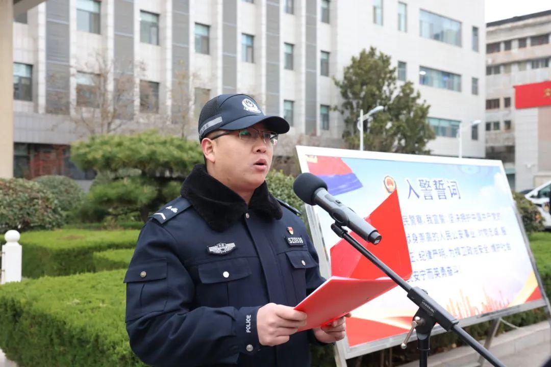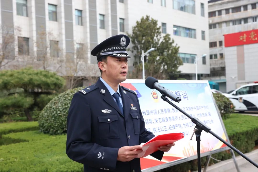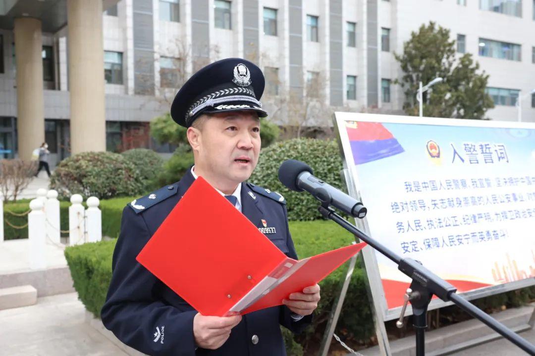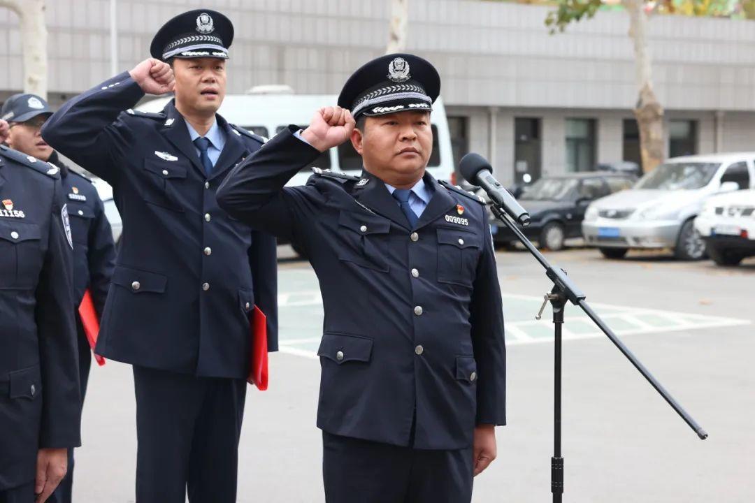 仪式上,接处警工作全市排名第二的十六里河派出所民警丁波带领方队同志集体重温《入党誓词》;近期打击处理工作成绩突出的刑警大队民警代表谢宏坤总结汇报工作经验做法和成效;民生警务工作提升显著的舜玉路派出所辅警代表陈永恒讲述了自己对公安工作的热爱以及磨砺中成长。