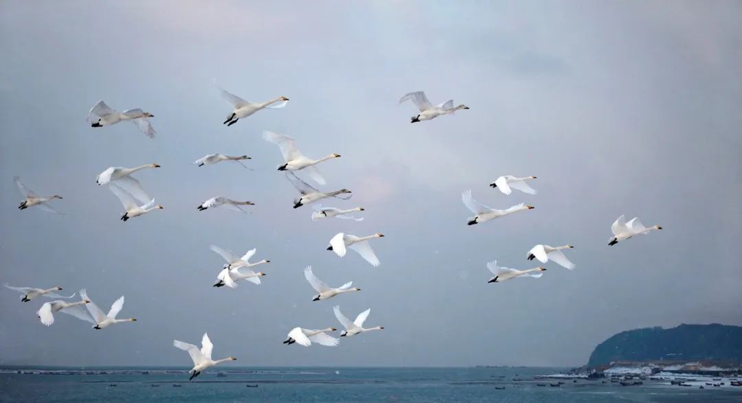 雪后的别样山海,翩翩起舞的大天鹅,组成了这里独特的冬日浪漫。