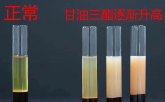 正常人的血浆是淡黄色、透明清亮的,但有的人从身体里抽出来的血,经过离心机分离后,会发现上层血浆变得发白、浑浊时,看起来像油,就要当心了,这种情况就叫做“乳糜血”,其实是大量脂肪微粒和载脂蛋白结合形成的乳糜颗粒。简单来说,“乳糜血”就是“泛着浮油的血”或称为“脂血”。