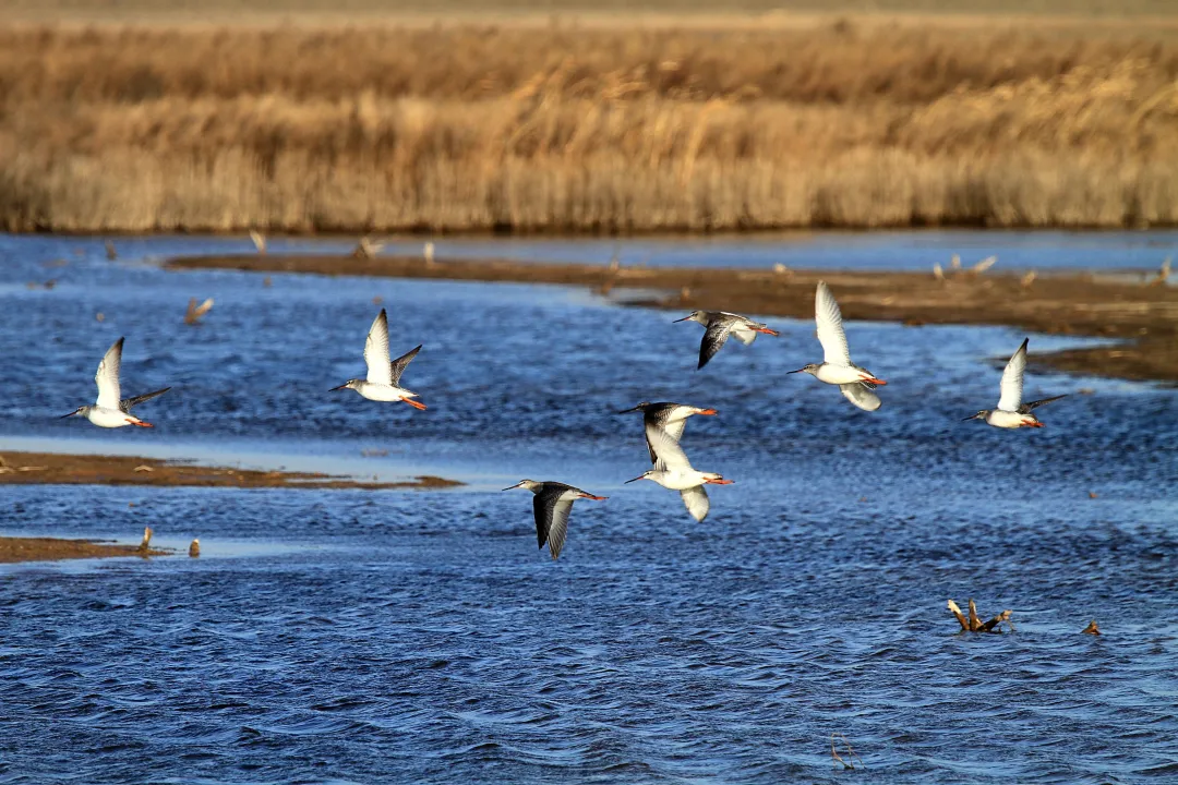 沿海观鸟线路:沿途以潮间带、入海潮河为主,可以观赏到丹顶鹤、反嘴鹬、白琵鹭、红嘴鸥等鹬类、鸥类鸟儿。