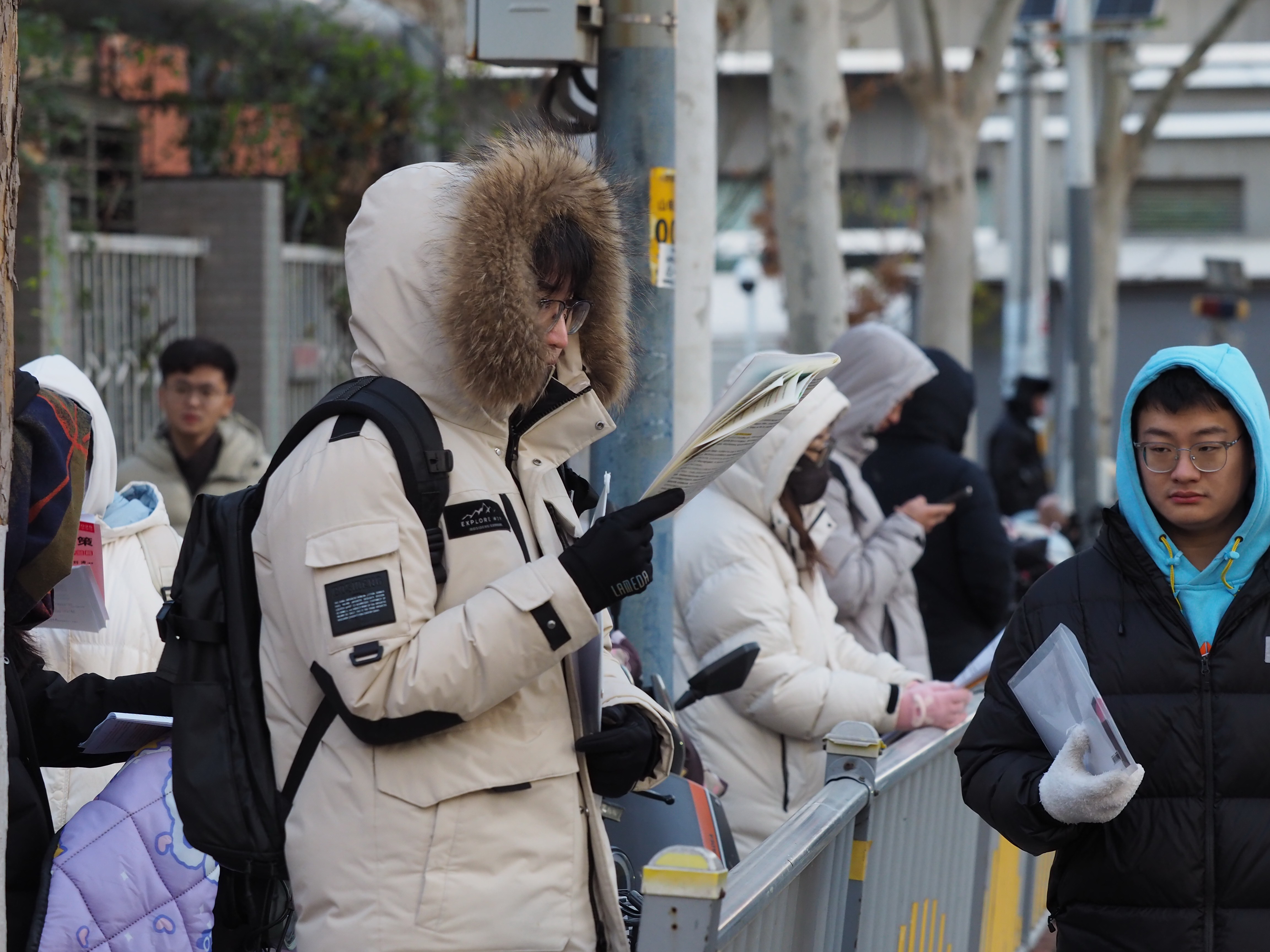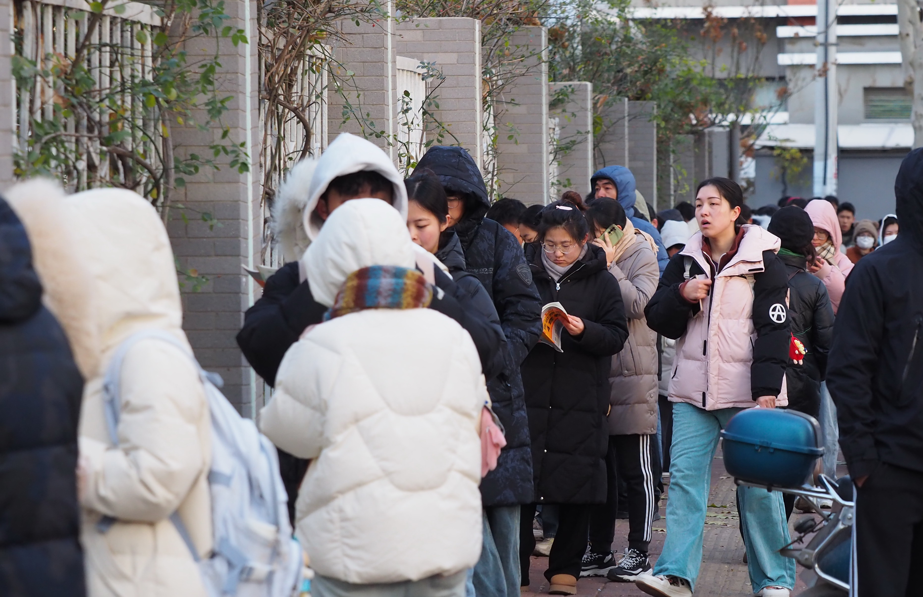 12月21日早晨,济南迎来入冬最冷的一天,最低气温低于-5℃。2025年全国硕士研究生招生考试即将开始,济南山师附中考点外,众多考生7点多就早早来到候考。大家冒着寒风复习资料,抓住最后的时刻温习资料。 大众新闻·齐鲁壹点记者 周青先