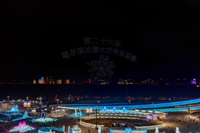 哈尔滨冰雪大世界无人机灯光秀。新华社发(殷忠伟 摄)“从火车站出来就坐上地铁,直达冰雪大世界,非常方便。”浙江游客张女士说,匆忙赶上开园日,好在地铁站准备了寄存柜,让她节省时间、轻装入园。虽然天气很冷,但心里很暖。