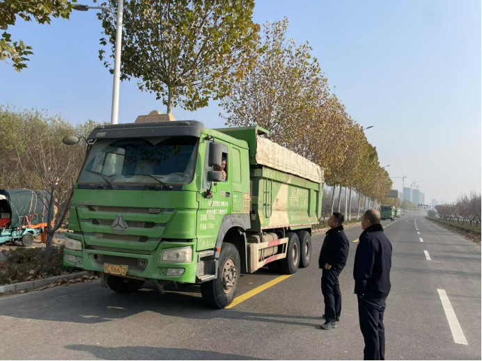 近日,淄博高新区综合行政执法与应急管理局渣土办为有效防治扬尘污染,杜绝运输渣土车“滴撒漏”等行为,开展冬季渣土车违规运输整治行动,对各工地的渣土车辆进行严格检查,重点检查渣土车辆的通行证、密闭情况以及车体清理情况。