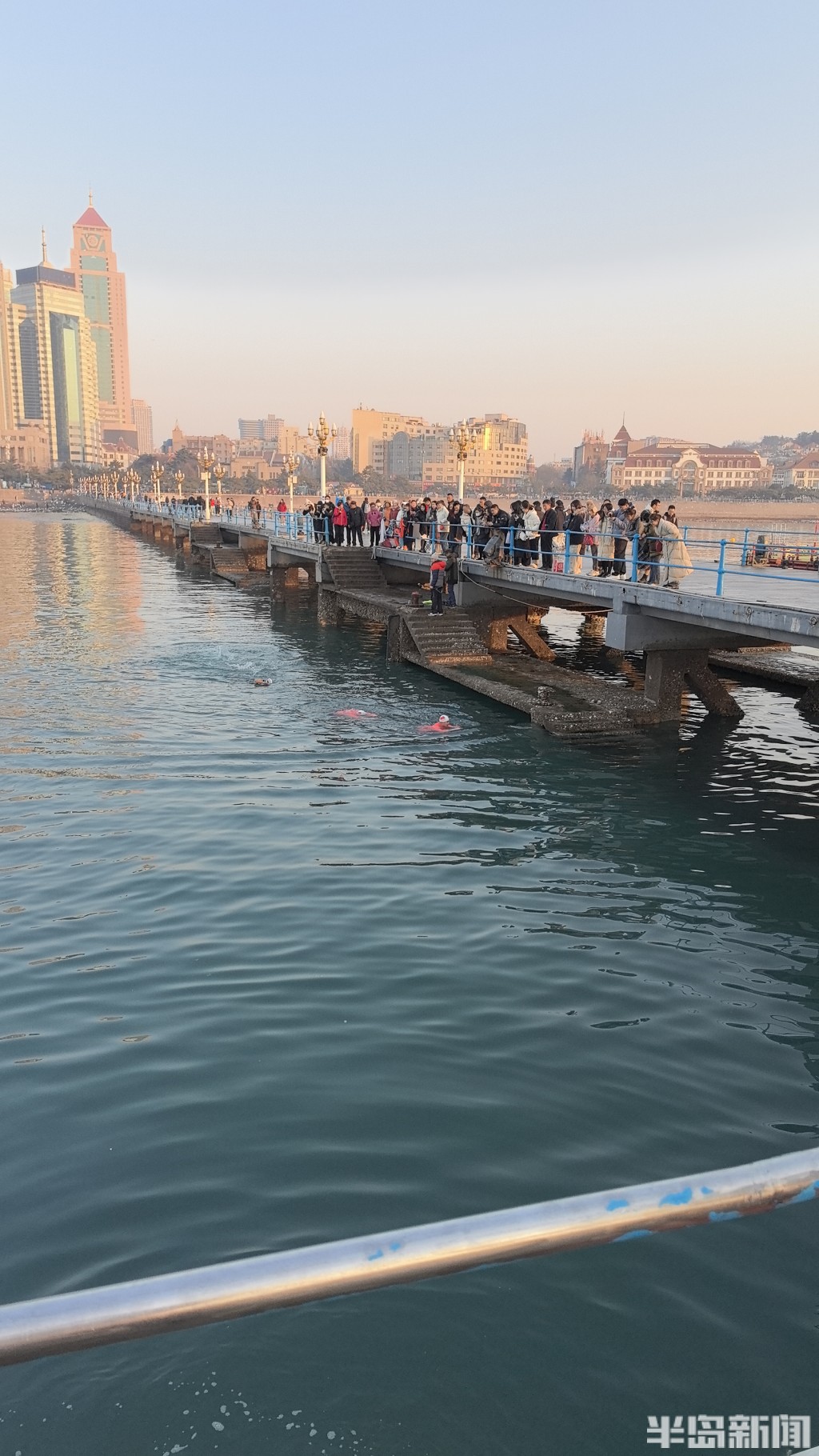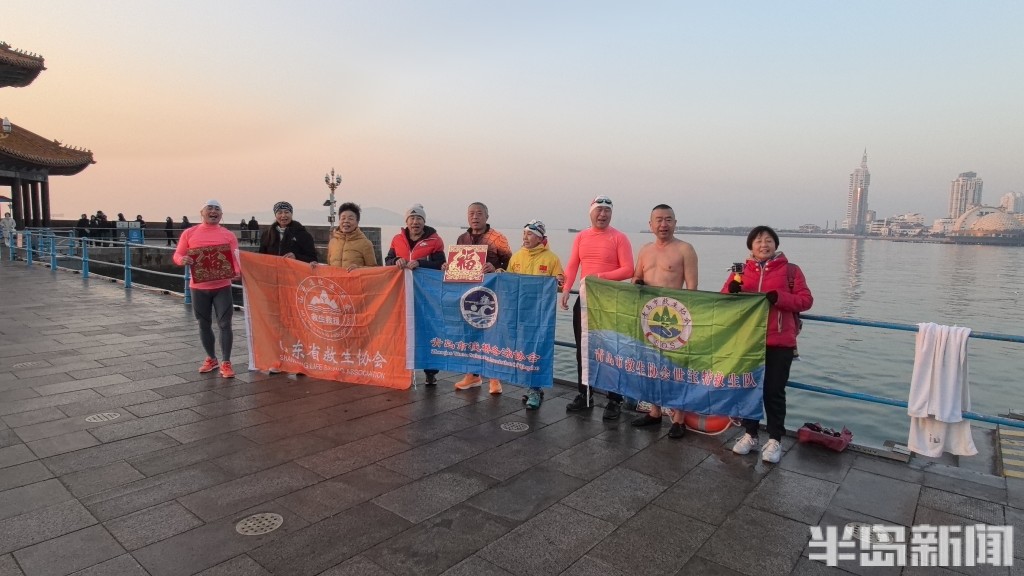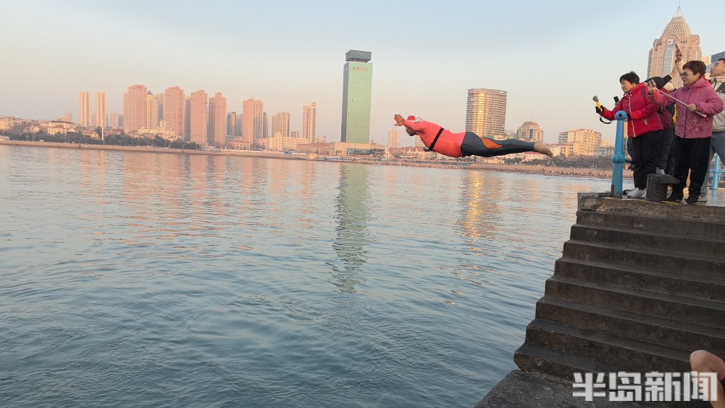 1月1日清晨,栈桥作为岛城知名景点迎来了不少游客,青岛栈桥冬泳协会的十几名冬泳爱好者们迎着第一缕阳光进行了新年第一跳,希望能为新的一年带来好运。据了解,他们用这样的方式迎接新年已经十几年了,每一年都希望一步一个台阶变得更好。