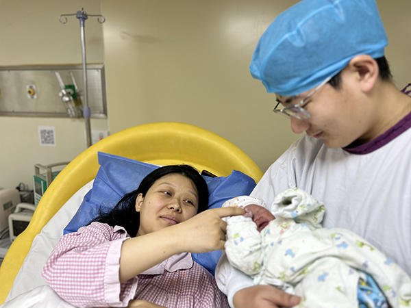 在中国福利会国际和平妇幼保健院诞下的首个元旦宝宝家庭。