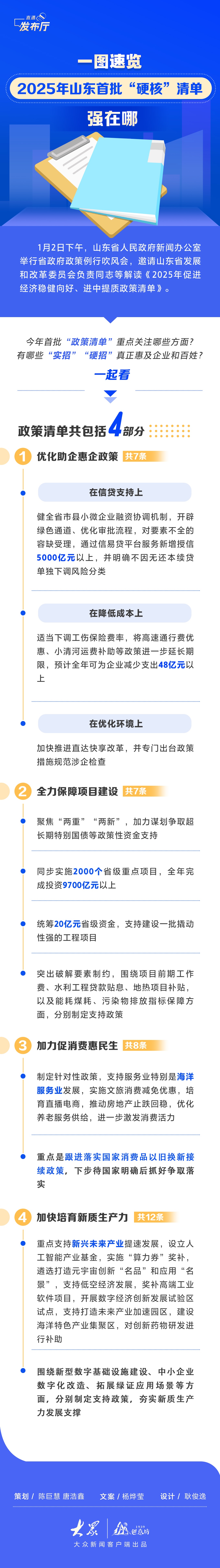 直通发布厅|一图速览2025年山东首批“硬核”清单强在哪山东发布 | 2025-01-02 15:24:14 原创杨烨莹 耿俊逸来源:大众新闻微信扫码扫码下载客户端(大众新闻记者 杨烨莹 设计 耿俊逸 策划 陈巨慧 唐浩鑫)责任编辑:叶彤
