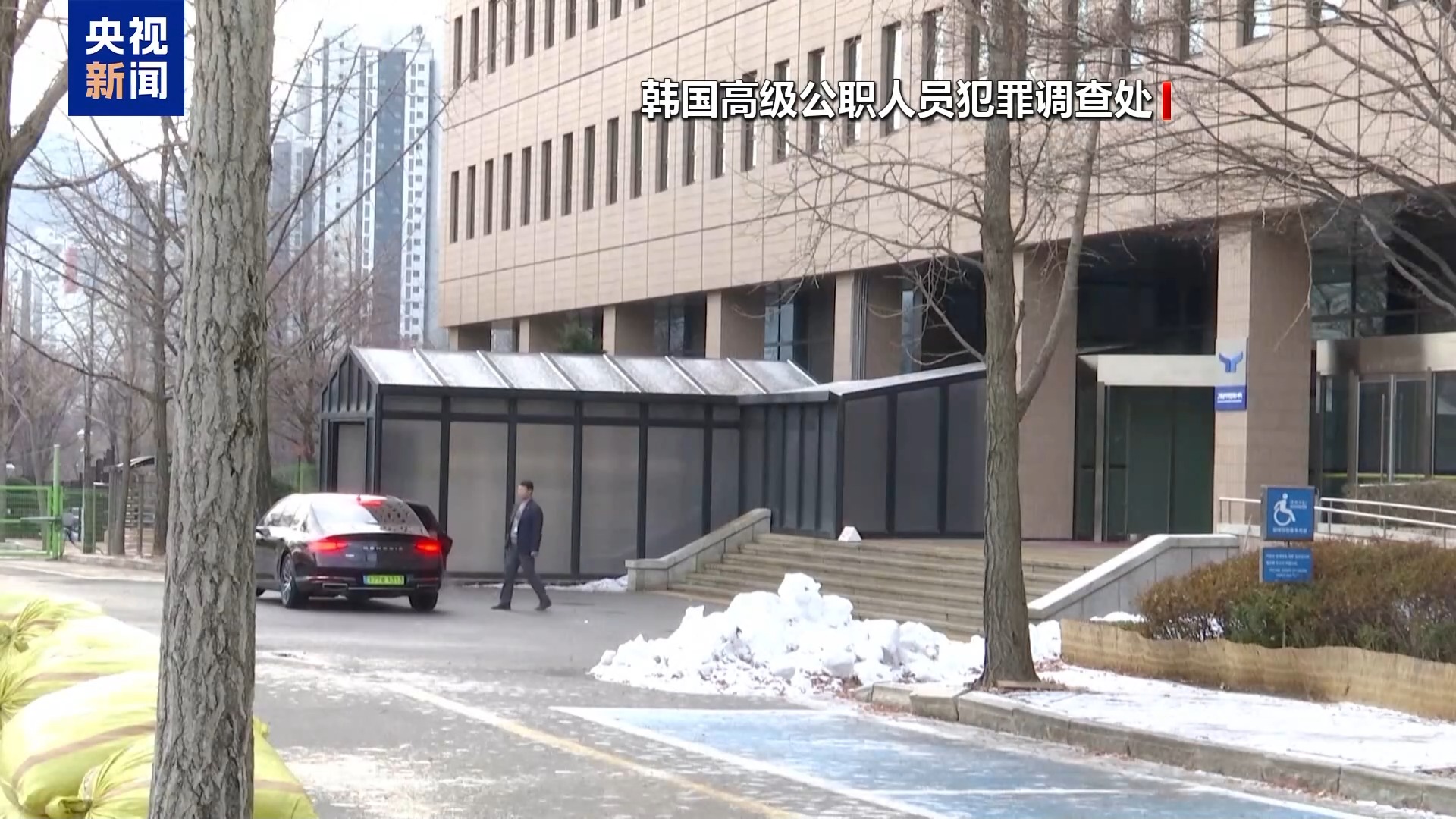 执行对总统尹锡悦逮捕令的韩国公职人员犯罪调查处(公调处)已突破总统官邸内第一、二道阻拦线,在总统官邸建筑前与警卫对峙。(@CCTV国际时讯)