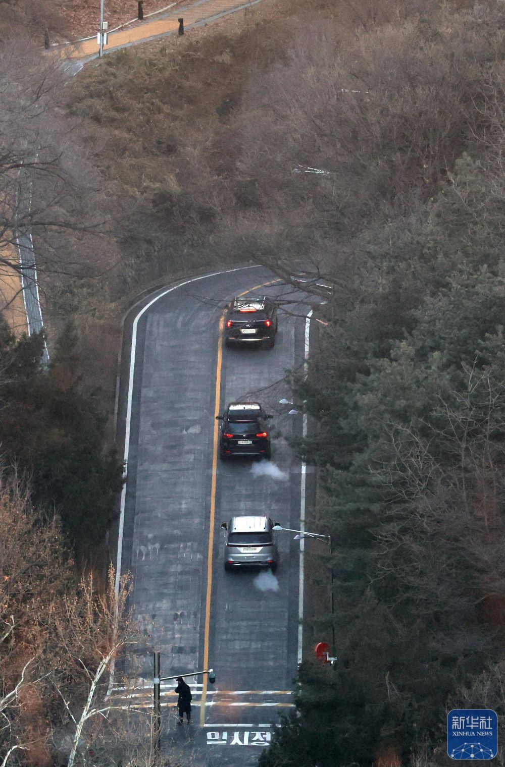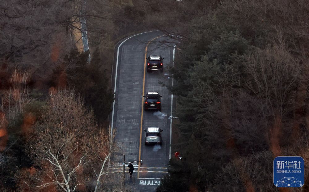 ↑1月3日上午,韩国高级公职人员犯罪调查处工作人员乘坐的车辆驶向首尔龙山区汉南洞的总统官邸。新华社/纽西斯通讯社