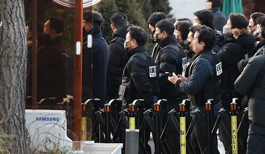 当天,共同调查本部的人员突破了警备团的警戒,准备进入总统官邸的建筑内。他们向总统警卫处长出示逮捕令和搜查令,要求警卫处予以协助,但警卫处长以《警卫法》和“警卫区域”为由禁止他们进入。