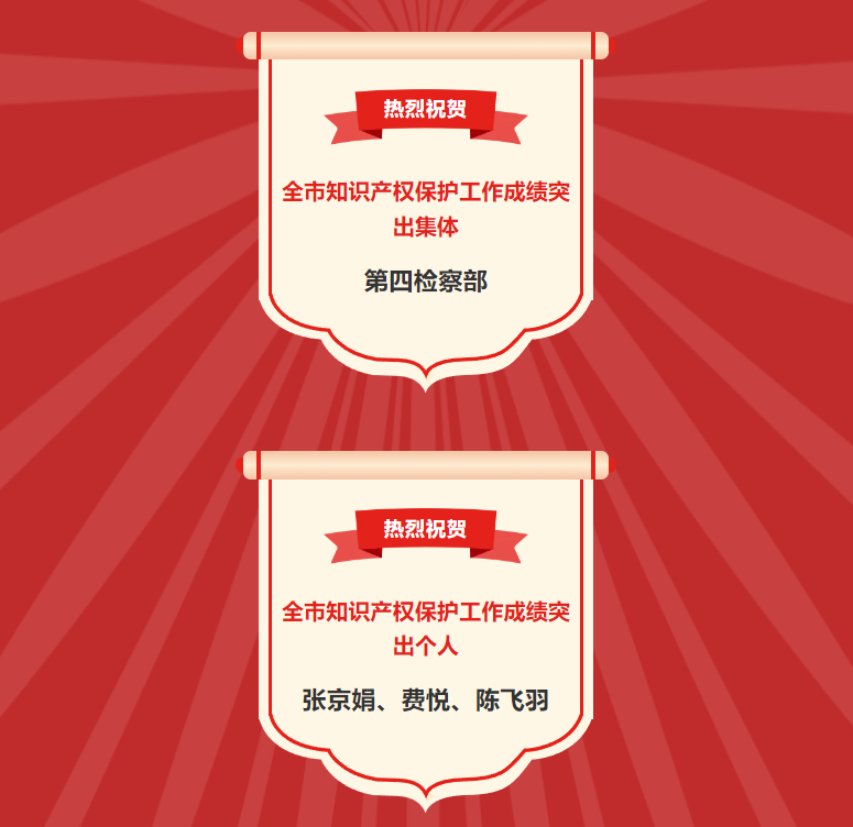 近日,日照市中级法院、日照市检察院、日照市公安局和日照市市场监督管理局联合印发《关于对2024年度全市知识产权保护工作成绩突出的集体和个人予以表扬的通报》。其中,日照市东港区检察院第四检察部获评全市知识产权保护工作成绩突出集体;东港区检察院张京娟、费悦、陈飞羽获评全市知识产权保护工作成绩突出个人。