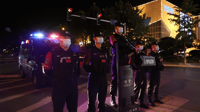 ▲ 2022年10月,莒县公安局特警大队夜鹰突击队在蓝湾执勤点开展夜间执勤。
