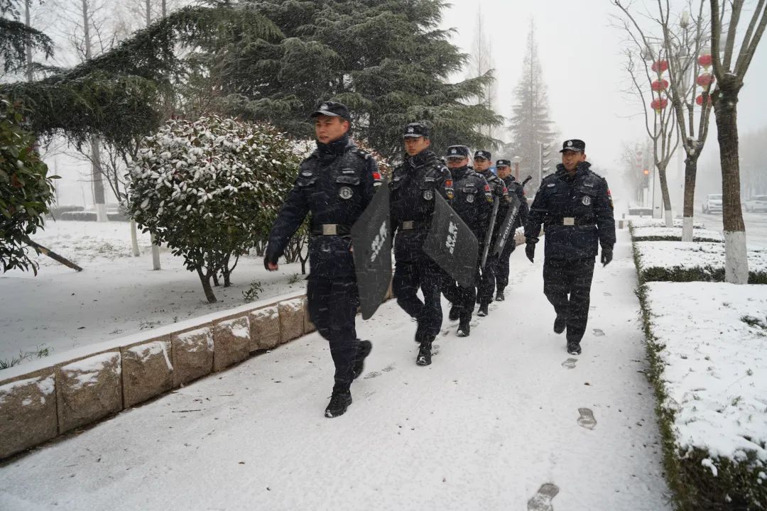 ▲ 2020年12月,岚山公安分局特巡警队员在雪天巡逻。