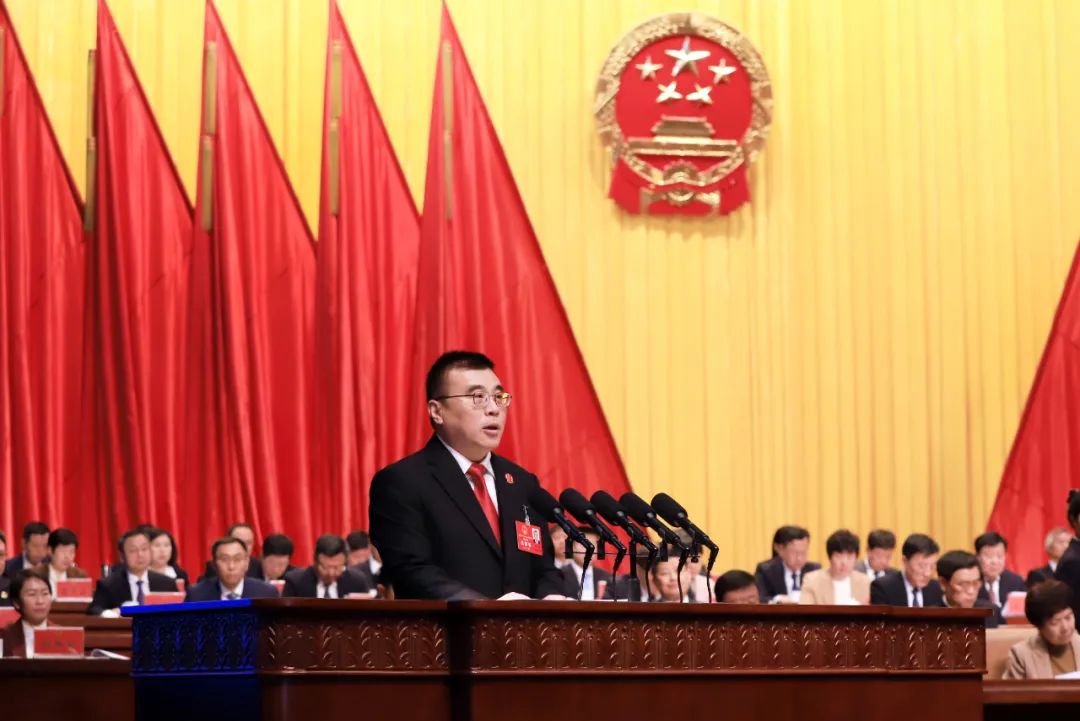 2025年1月13日上午,在潍坊市第十八届人民代表大会第五次会议上,潍坊市中级人民法院院长李成涛作法院工作报告。(潍坊市中级人民法院)