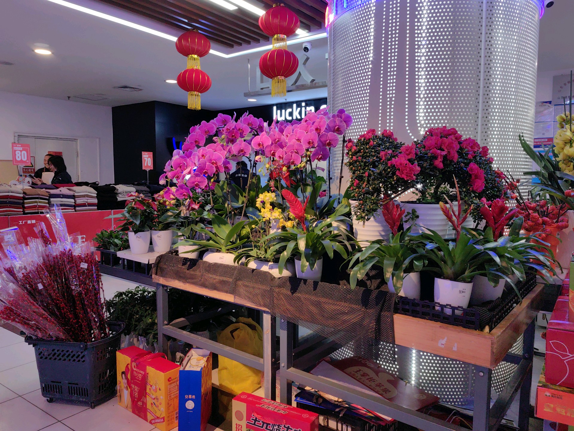 走进银座环山路店,年味儿迎面而来。各类年货琳琅满目,从生鲜果蔬到糖果酒水,从散装称重到各式年货礼盒,应有尽有。不仅如此,还新开辟了鲜花区,盆栽花和鲜花束都有,且花卉品种多样,给市民提供了丰富的选择。饰品区更是春联、福字、小灯笼等花样繁多,喜气洋洋。