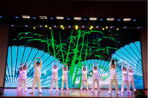 精彩的比赛结束后,工会会员代表向现场观众展示了传统健身项目太极拳和太极剑。伴随悠扬舒缓的音乐,推手、转身、踢腿,一招一式起势沉稳,形成含蓄内敛且连绵不断的风格,尽显刚柔并济之美。最后,全场共同起立进行了拍打操运动,大家跟随节奏整齐有律动的上拍下打,整个会场洋溢着欢快、热烈的氛围,并将活动推向了高潮。