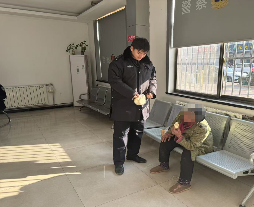 为了帮助老人尽快找到家人,民警小心翼翼地将老人带回了派出所。回到所里后,考虑到老人可能饥寒交迫,民警贴心地为老人端来了热气腾腾的包子。老人接过包子,眼中满是感激,虽然言语表达并不流畅,但从眼神中能看出深深的谢意。民警一边给老人递着水,一边轻声道“大娘,包子有的是,您慢点吃”。