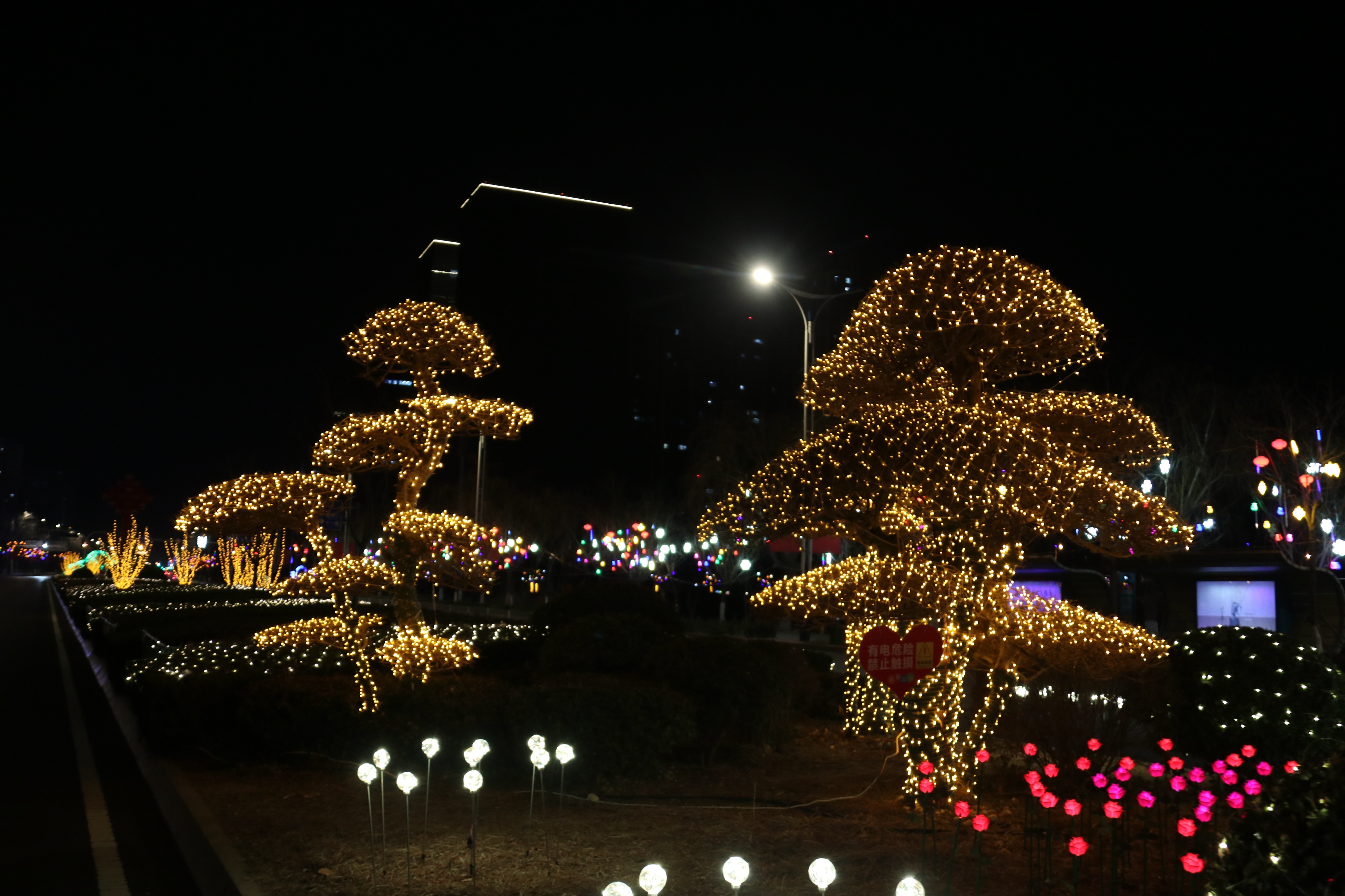 本次春节亮化工程,巧妙地以广场、公园等重点部位为“点”,以城区的重点道路为“线”,再结合市城区的整体布局铺展成“面”,通过点线面的完美融合,营造出一个立体且生动的新春氛围。