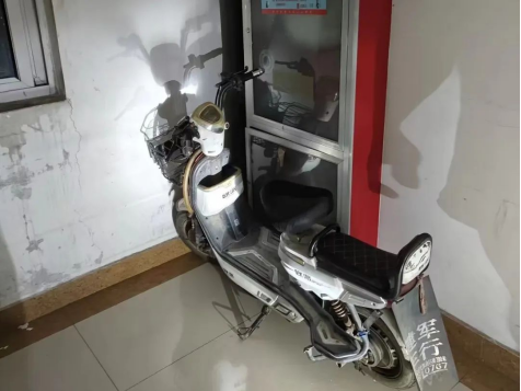 1、门厅前停放电动自行车。