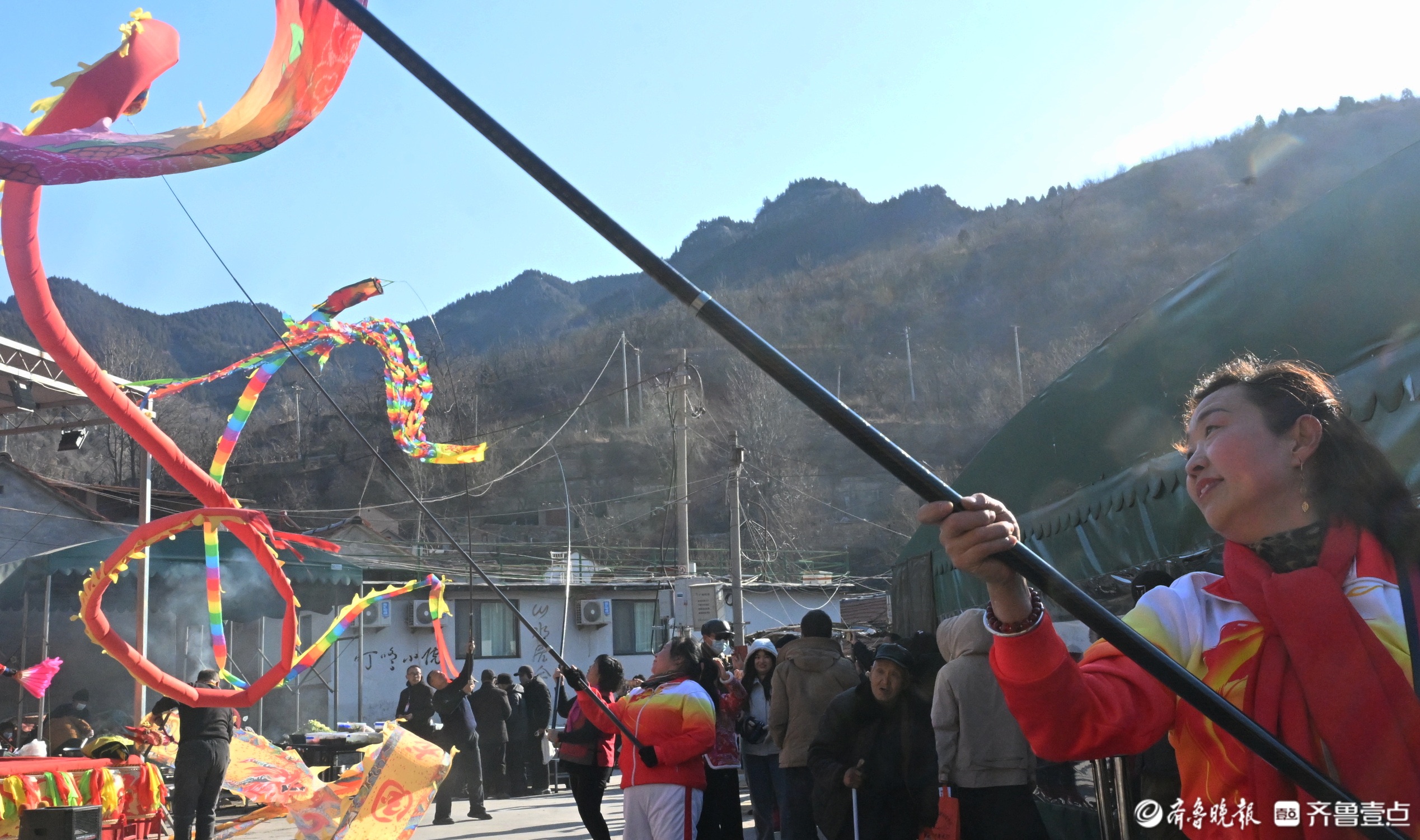 村民舞起长龙迎接八方游客。