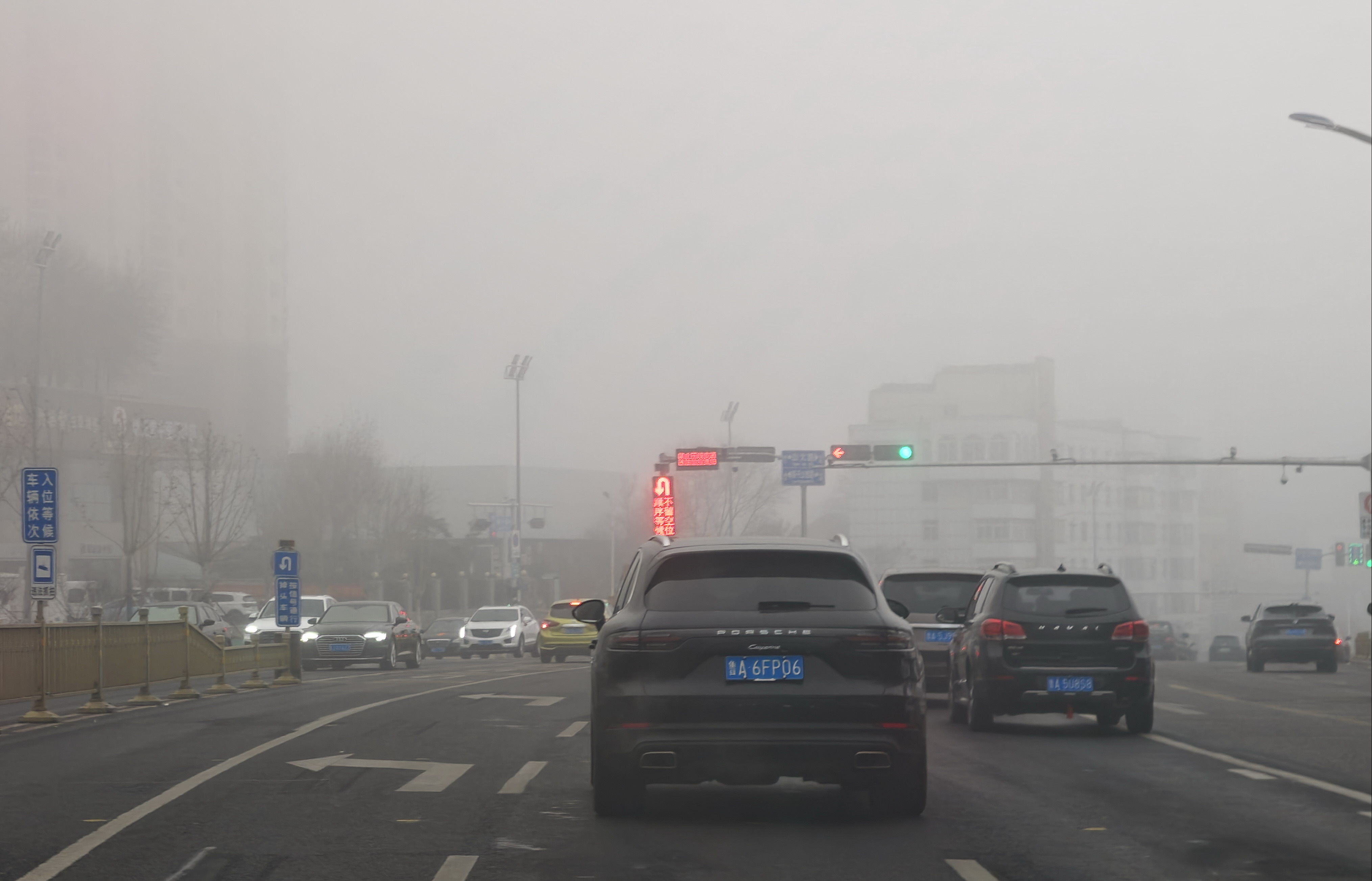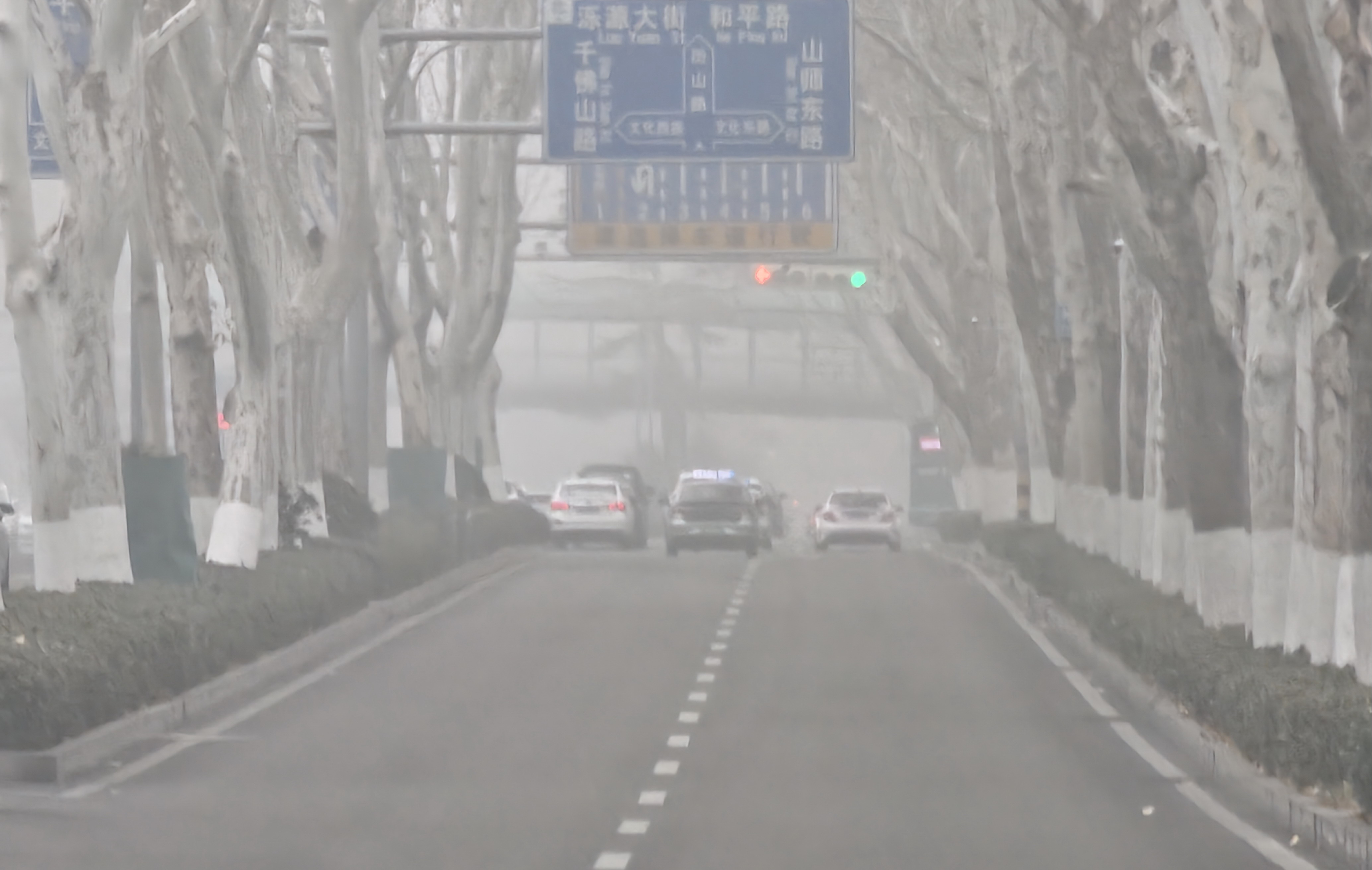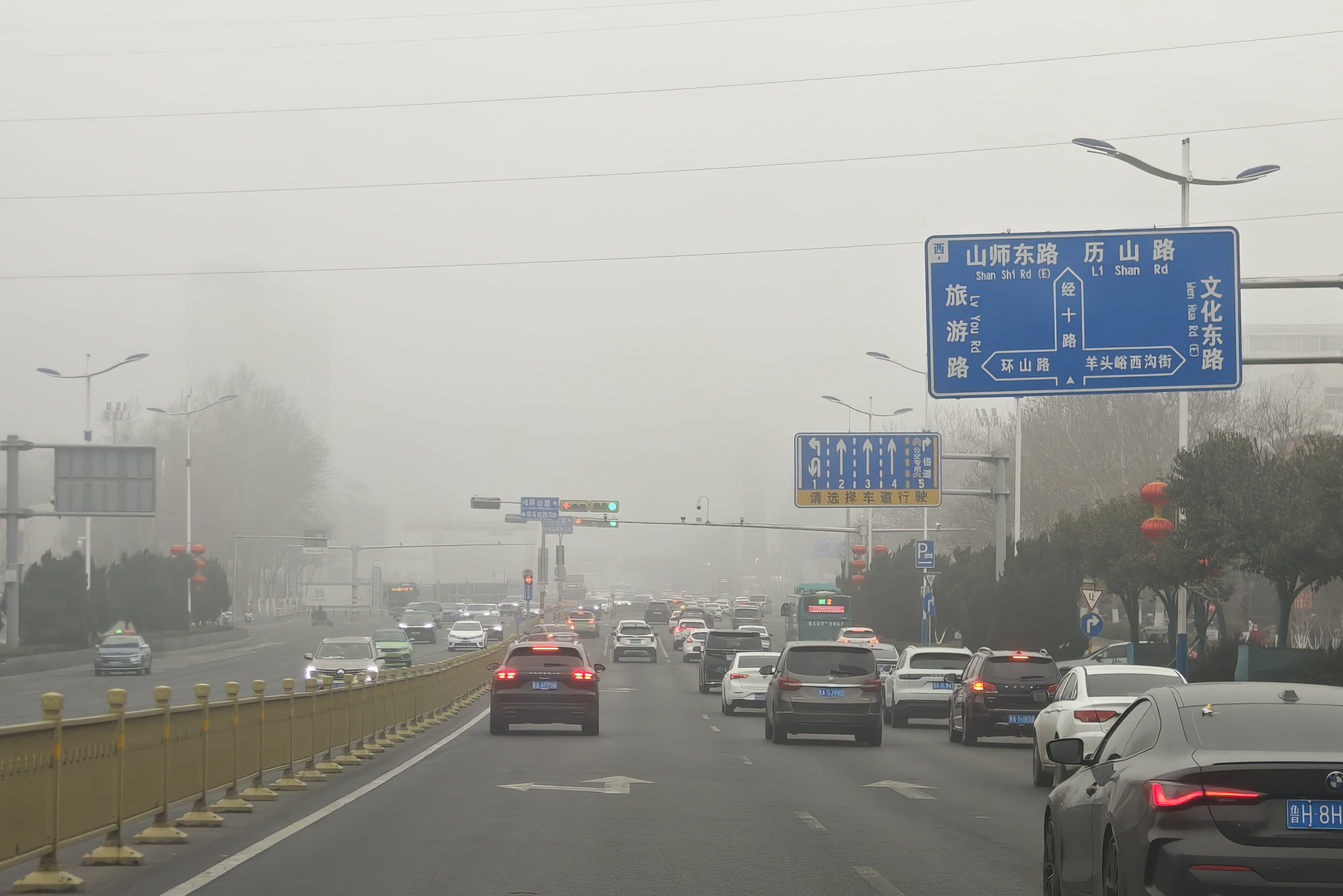 1月31日,大年初三,济南市区出现大雾,能见度降到三四百米,在历山路南头也看不到千佛山的影子。据了解,大雾的来临跟当日无风的静稳天气有关,0℃左右的气温也很有利于大雾形成。 大众新闻·齐鲁壹点记者 周青先