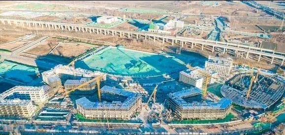 目前,学校整体结构框架已初具规模,宿舍楼和教职工公寓已完成封顶,外立面建设正在紧锣密鼓地进行中。