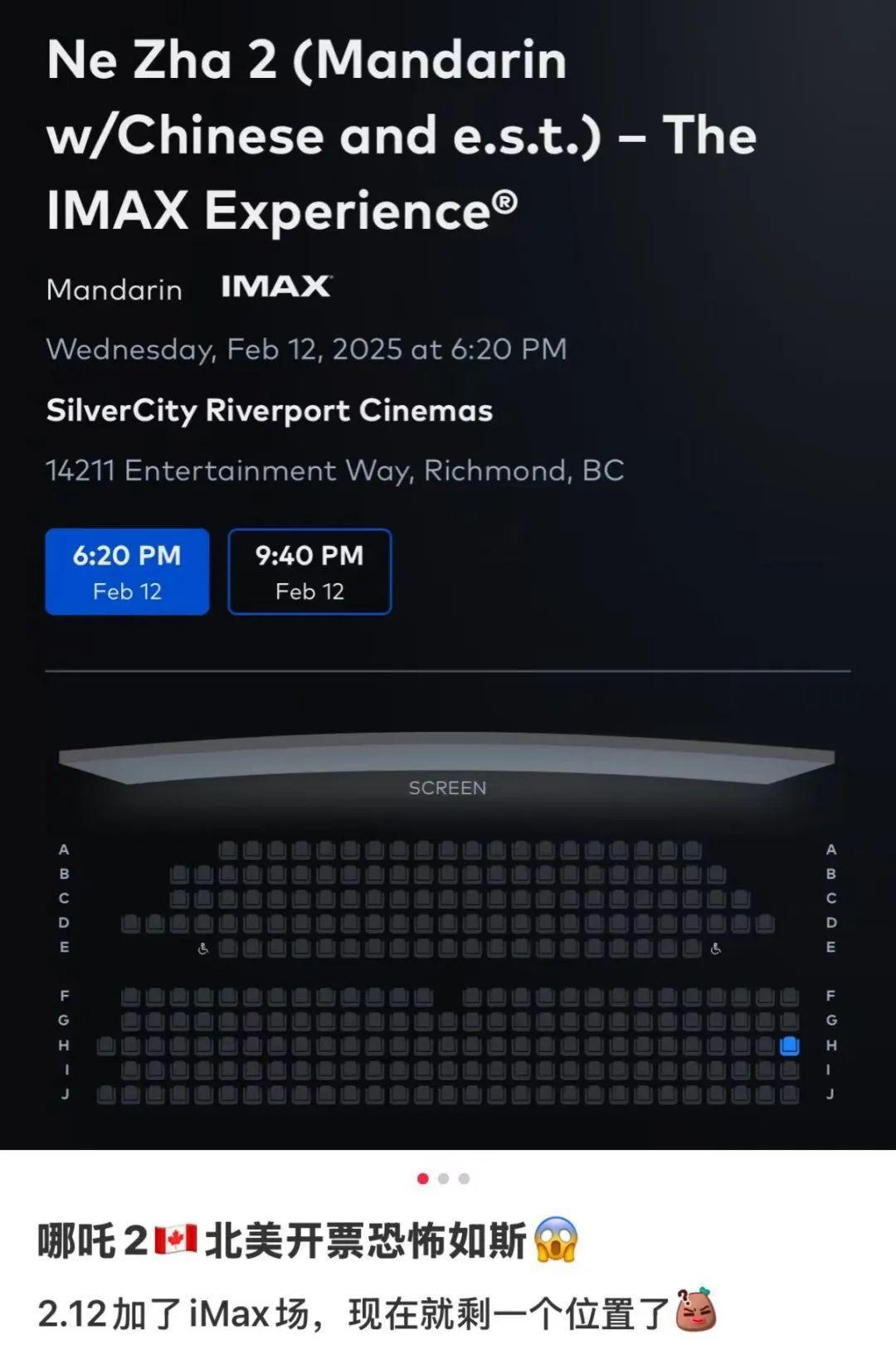 “IMAX票刚开,好位置就没了。”社交平台上,不少海外网友感慨《哪吒之魔童闹海》(以下简称《哪吒2》)的电影票太抢手。