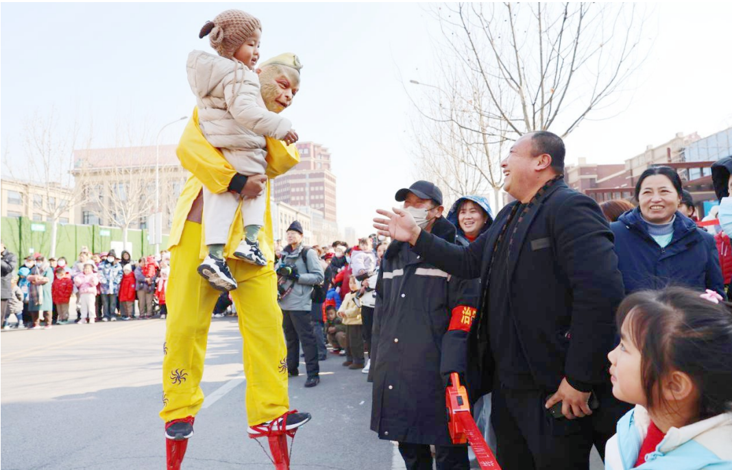 大泊子高跷作为每年活动的“重头戏”,一亮相就赢得阵阵叫好。据介绍,大泊子高跷于2014年入选区级非遗名录,是辛安街道的特色民俗文化符号。在街道支持下,如今大泊子高跷队拥有65名队员,成为当地民间艺术的“明星招牌”。