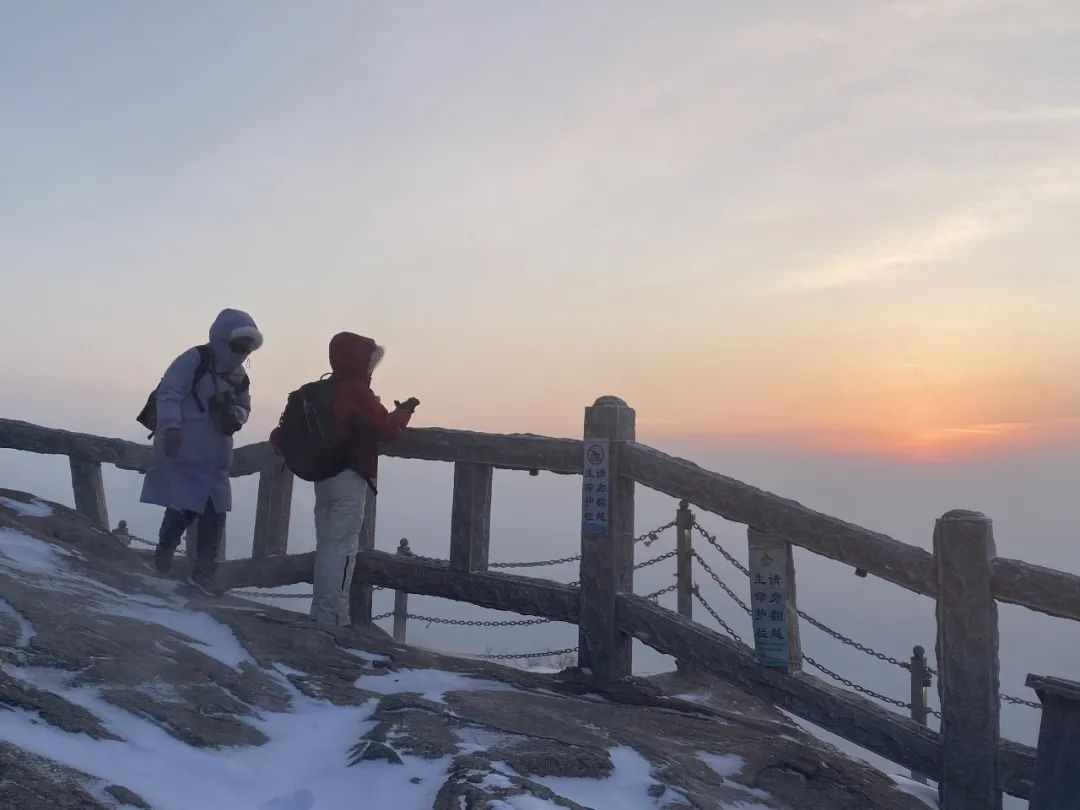 泰山已恢复开放!立春后首场降雪(中雪)后,日出、雾凇美景齐现,恍若仙境→