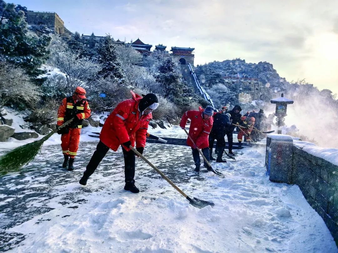 瑞雪过后,经过泰山景区工作人员十余小时奋战,截至2月12日12时,泰山景区多条线路恢复开放,但道路湿滑,游客朋友们需做好防寒防风防滑等准备,确保安全。
