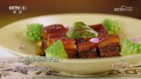 棱角分明、方方正正的孔府酱香坛子肉,选用了上等的五花肉,慢火煲制4个小时制作而成。