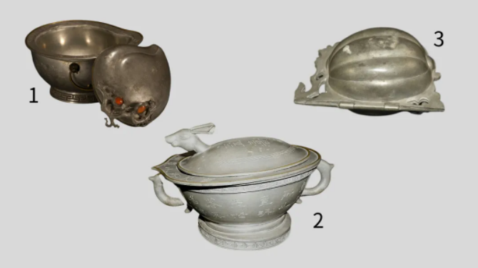 除了鸭和鱼的造型,古人“爆改”餐具的创意还在继续,你能看出以下三款器具都是什么造型吗?