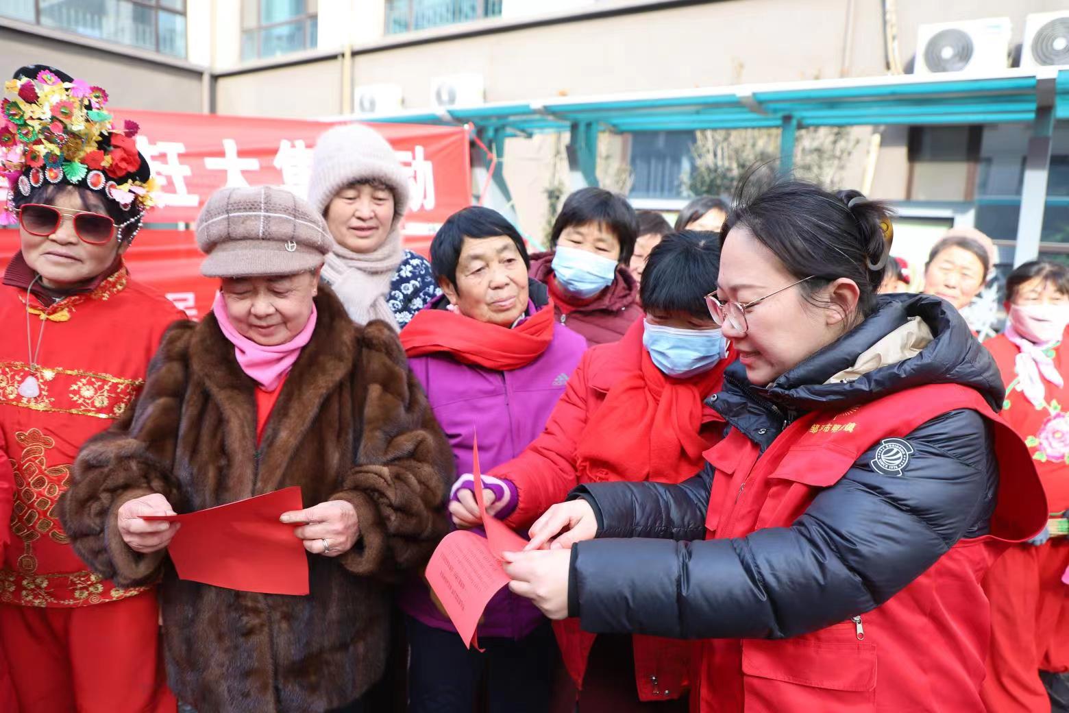 1月25日上午,滨城区梁才街道大郑村“黄河大集”上,巧妙嵌入“村晚”的《传承红色基因 弘扬优良家风》《我的祖国》《幸福中国一起走》等节目陆续上演,演员们用快板、顺口溜等宣传方式宣讲民族团结、移风易俗等内容,为现场观众送上了一场“声”入人心的宣讲盛宴。