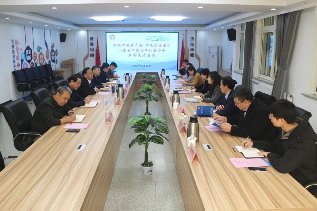 2月17日,济南仲裁委员会与济南财金集团、山东省不良资产处置协会开展业务交流座谈,共同探索多元化纠纷解决机制的合作新模式。济南仲裁委员会办公室党组书记、主任贾玉东主持座谈交流。